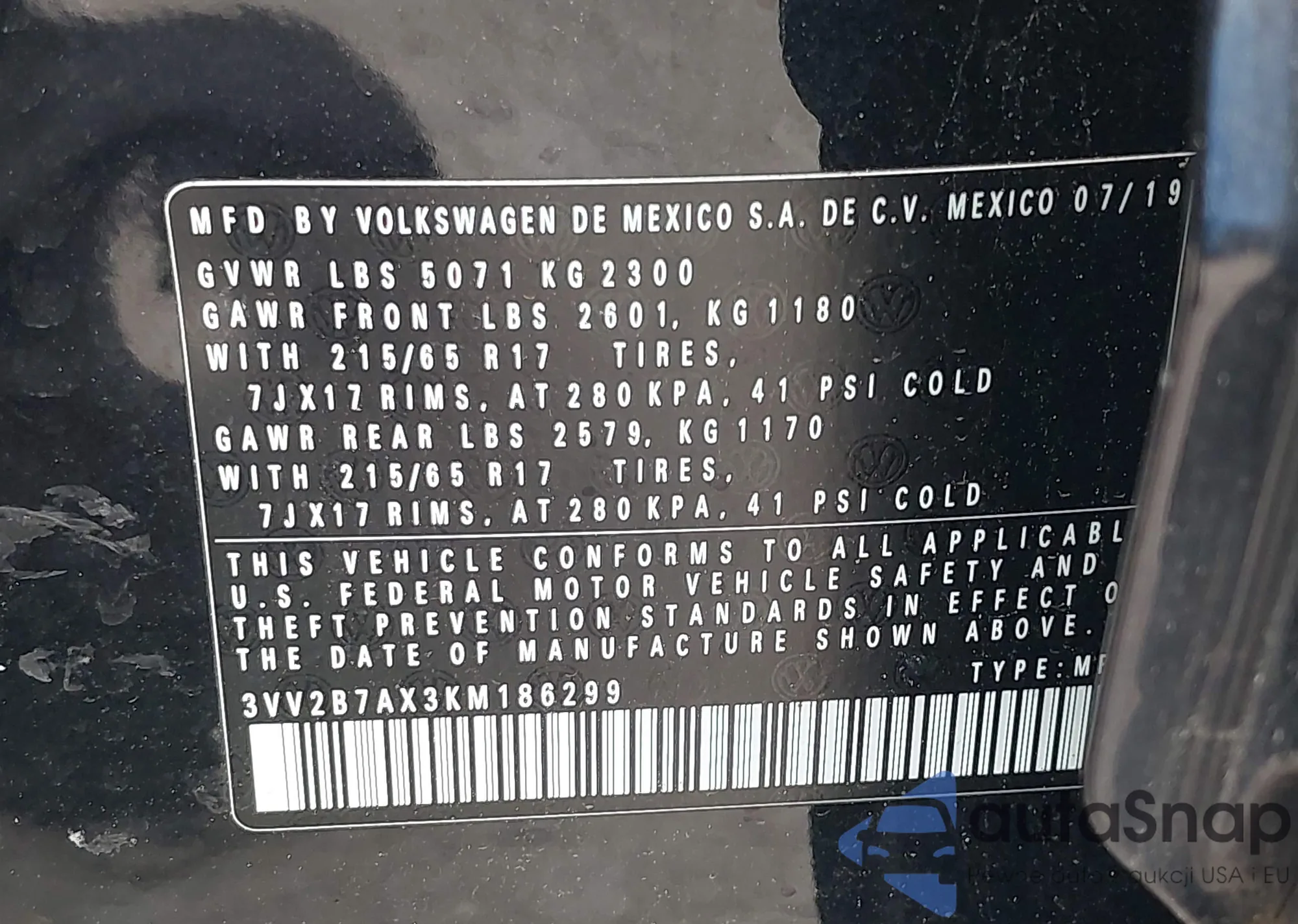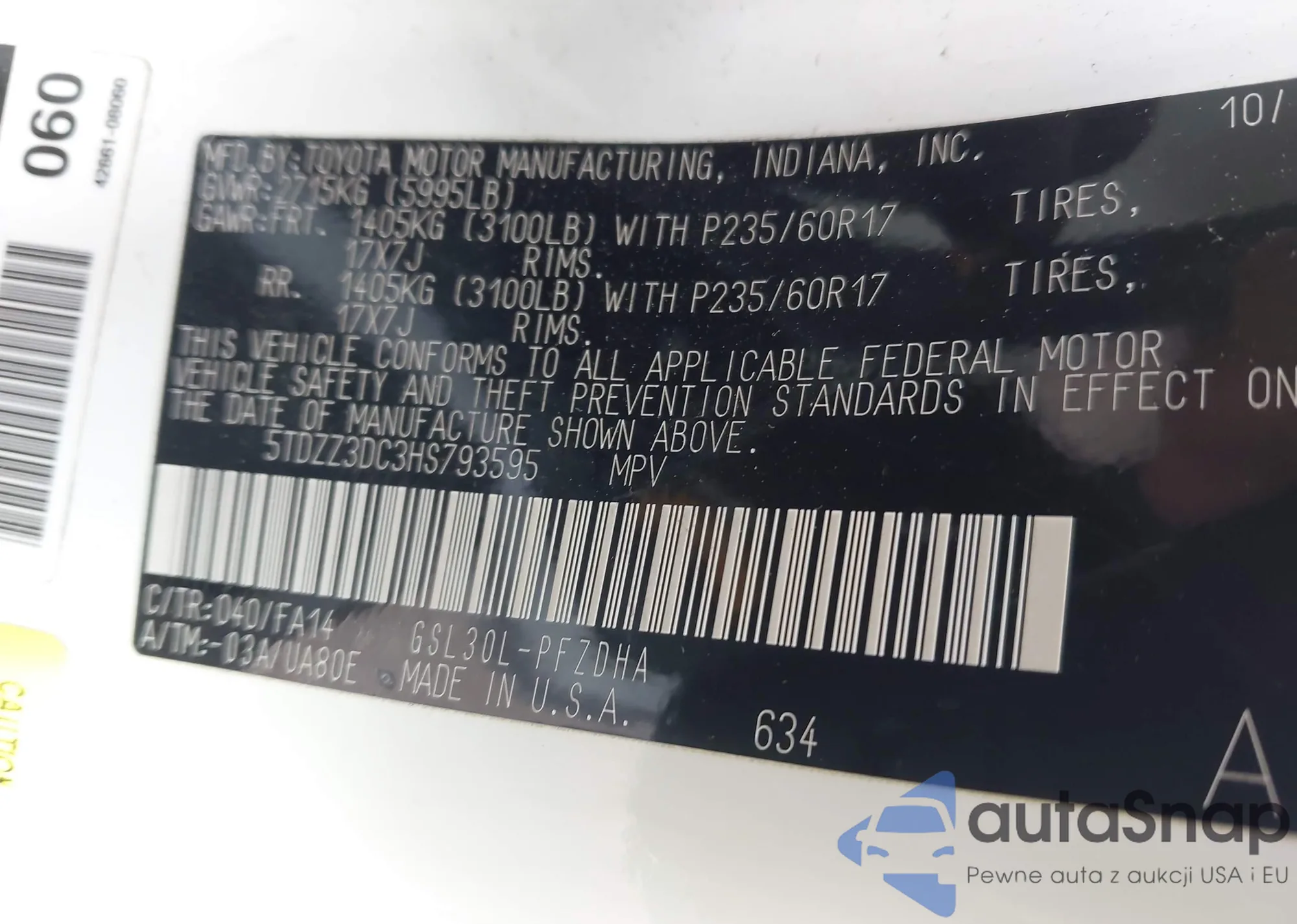 • VIN 5TFSZ5AN8GX038017