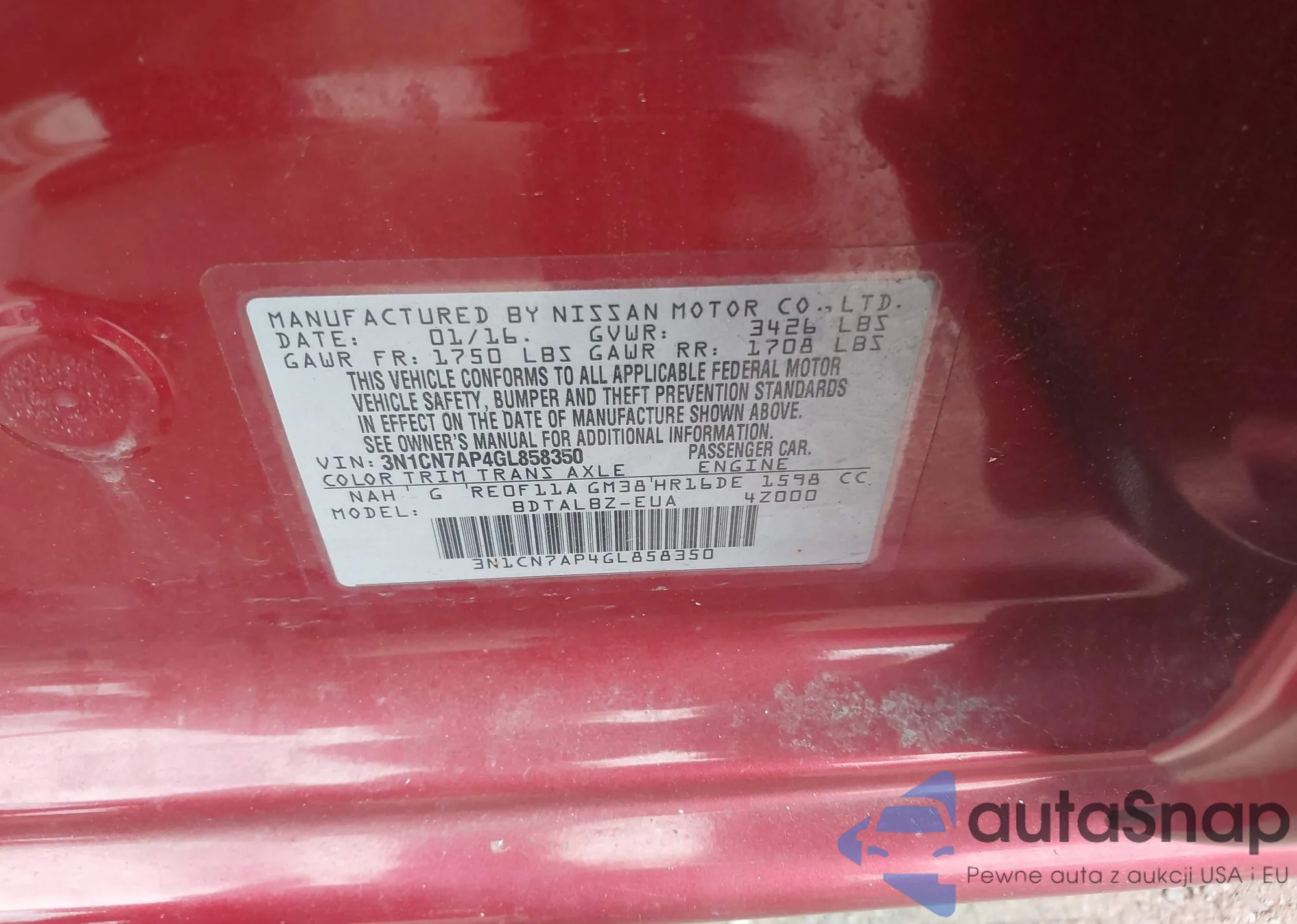 • VIN 3N1CN7AP4GL858350