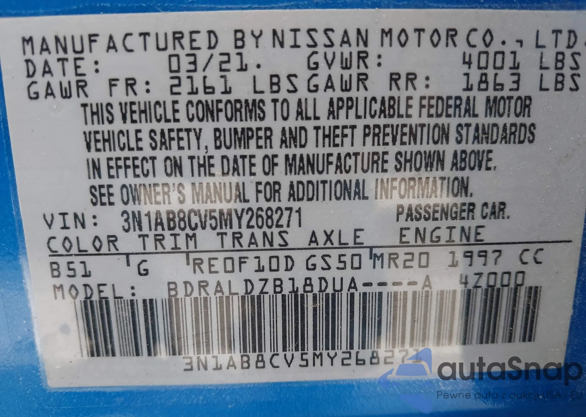 • VIN 3N1AB8CV5MY268271