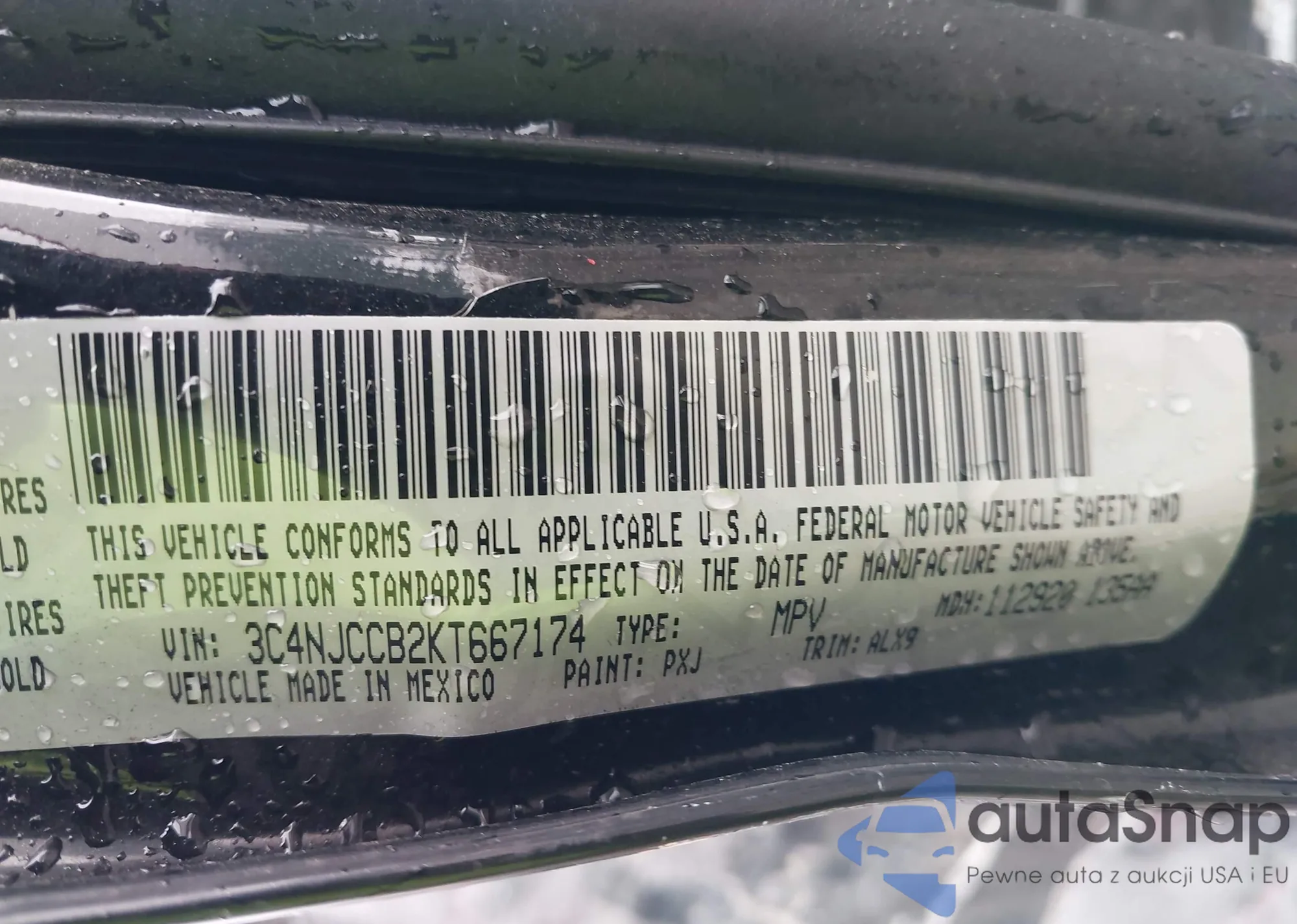 • VIN 3C4NJCCB2KT667174