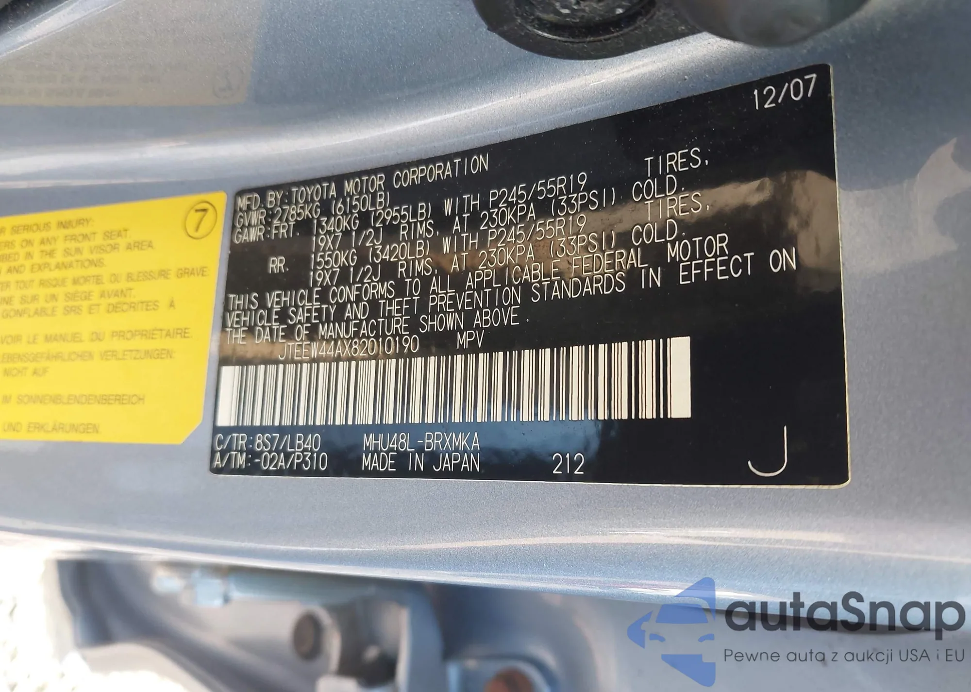 • VIN 7FARW2H82JE041510