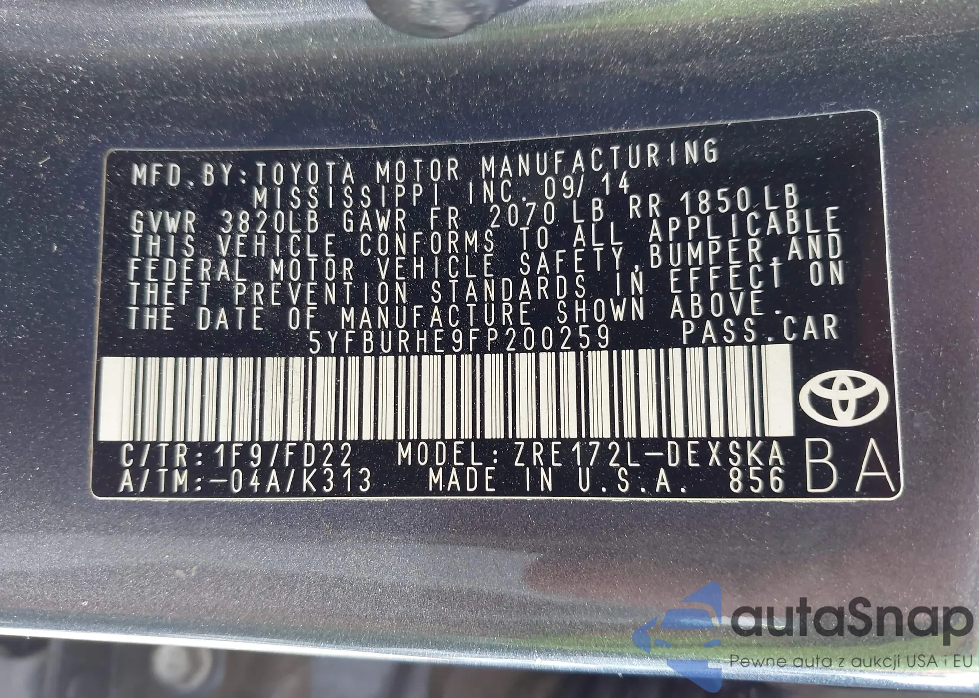 LOT: 42466545 VIN: JTEBU14R158034836