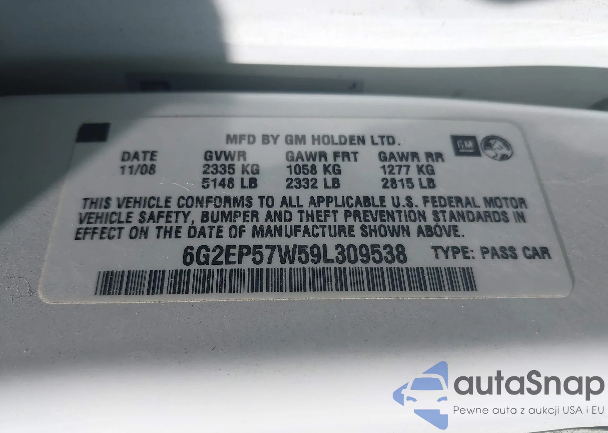• VIN 6G2EP57W59L309538