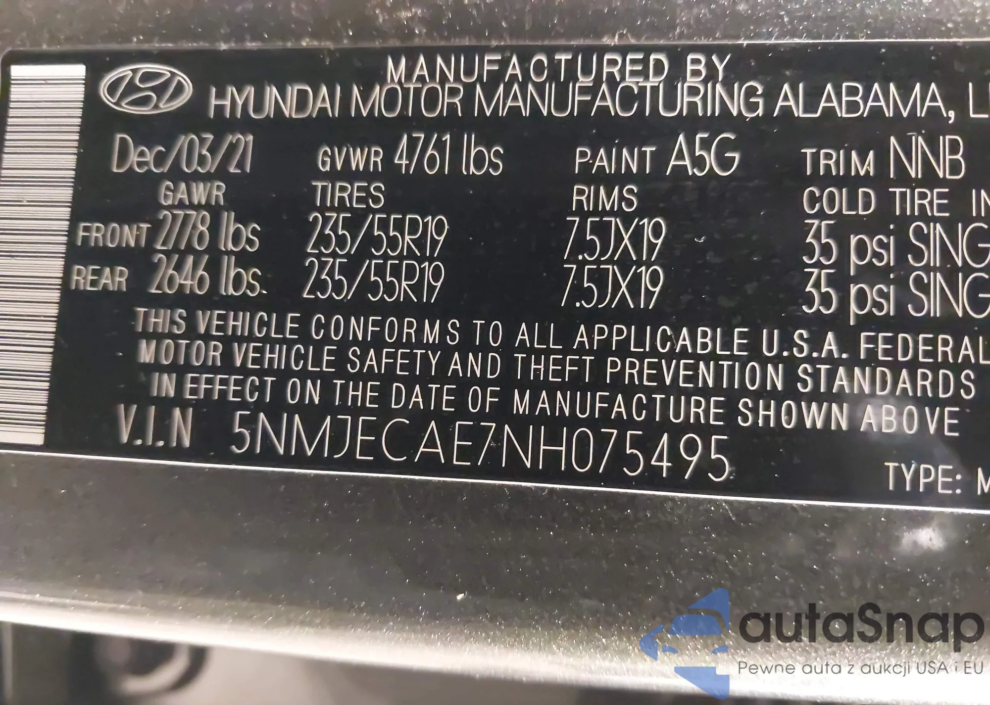 • VIN 5NMJECAE7NH075495