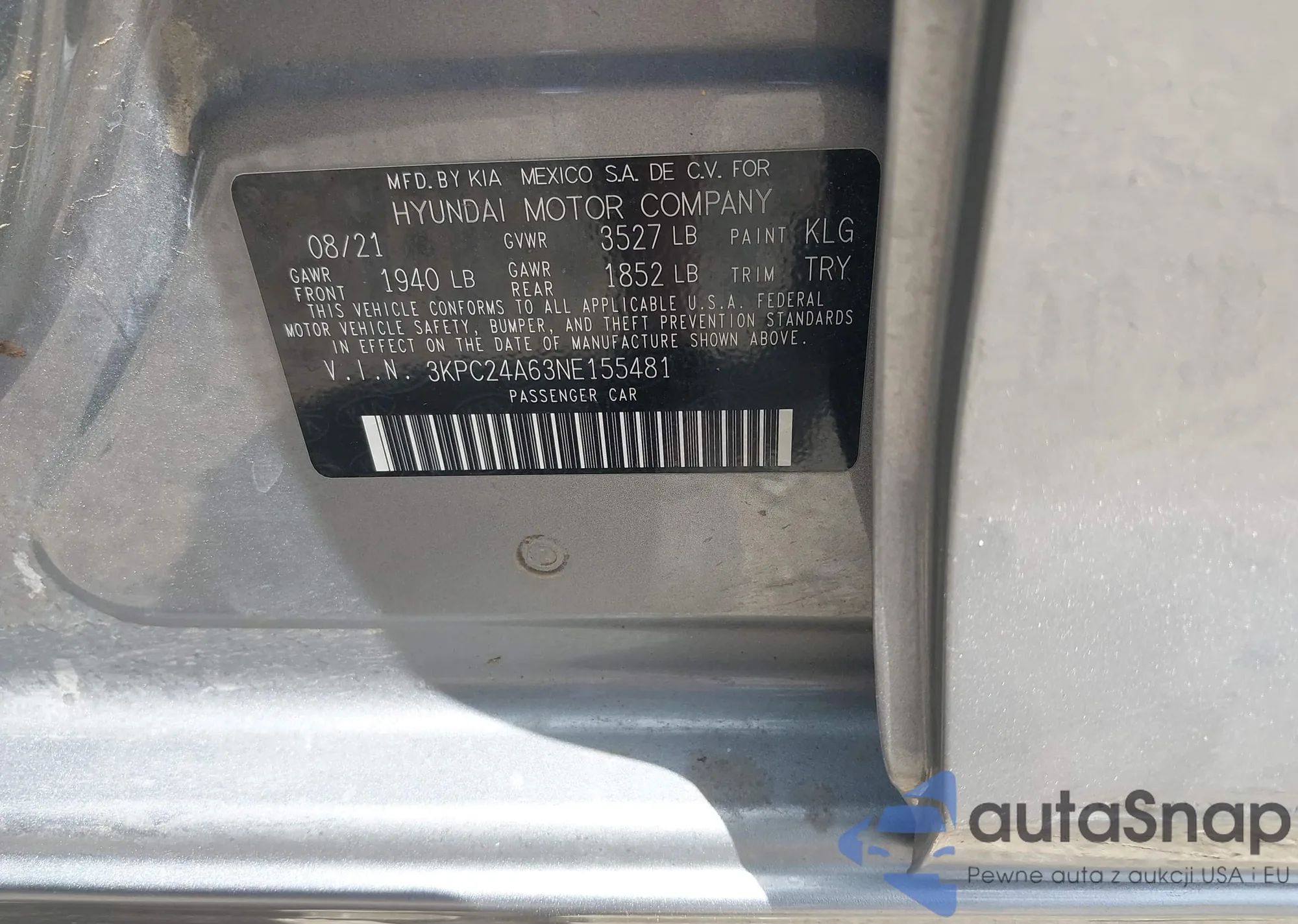 • VIN 3KPC24A63NE155481