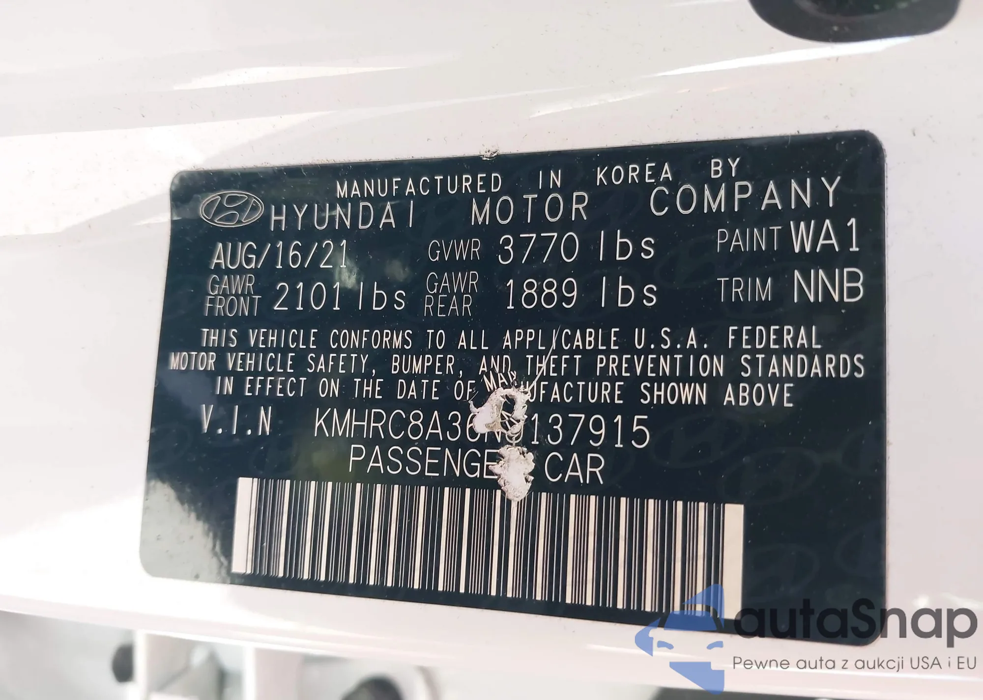 LOT: 42626386 VIN: KMHRC8A36NU137915