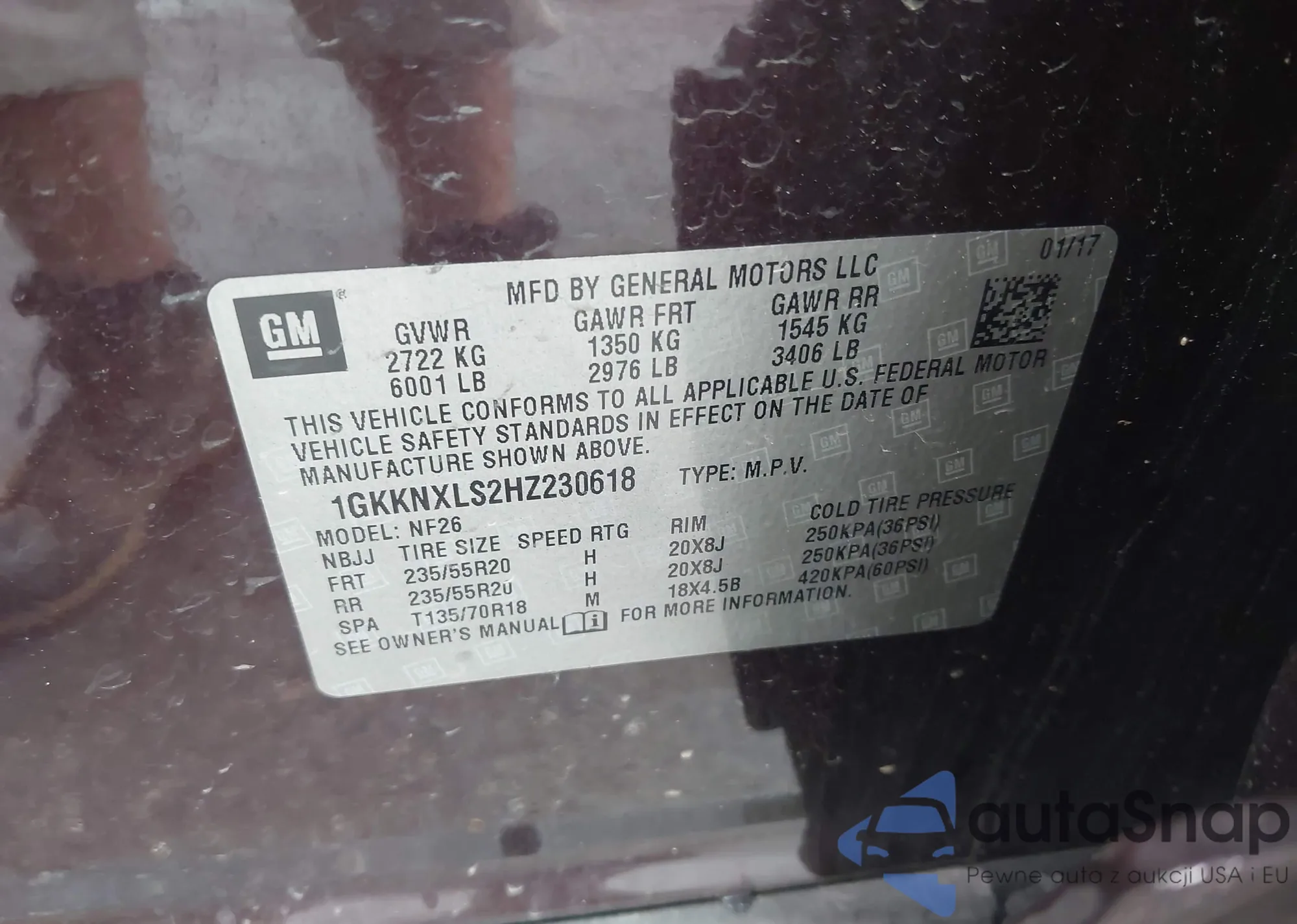 • VIN 1GKKNXLS2HZ230618