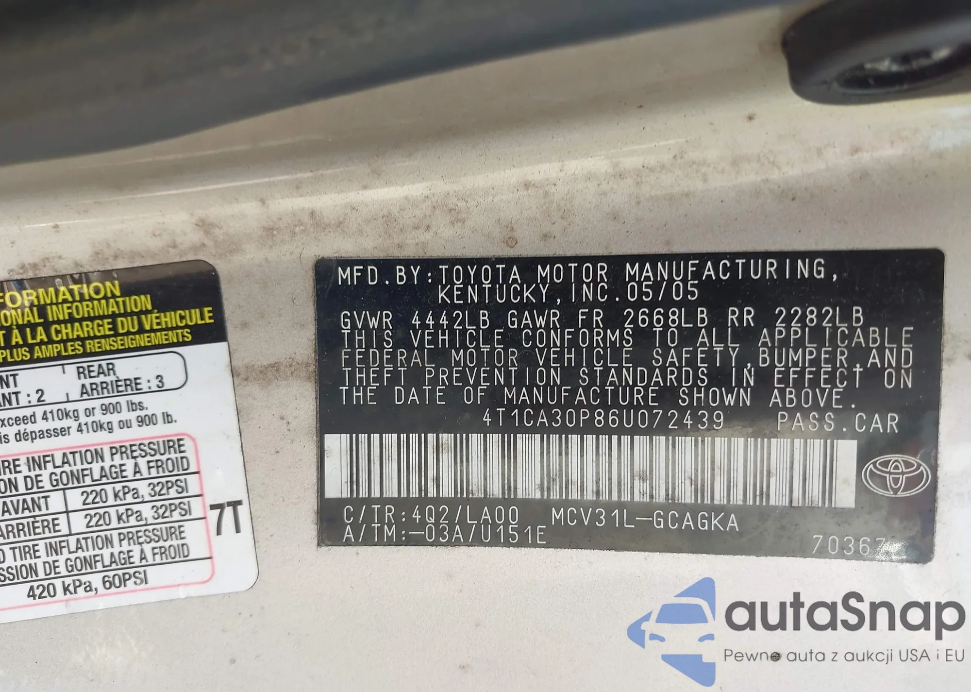 LOT: 42705072 VIN: 4T1CA30P86U072439