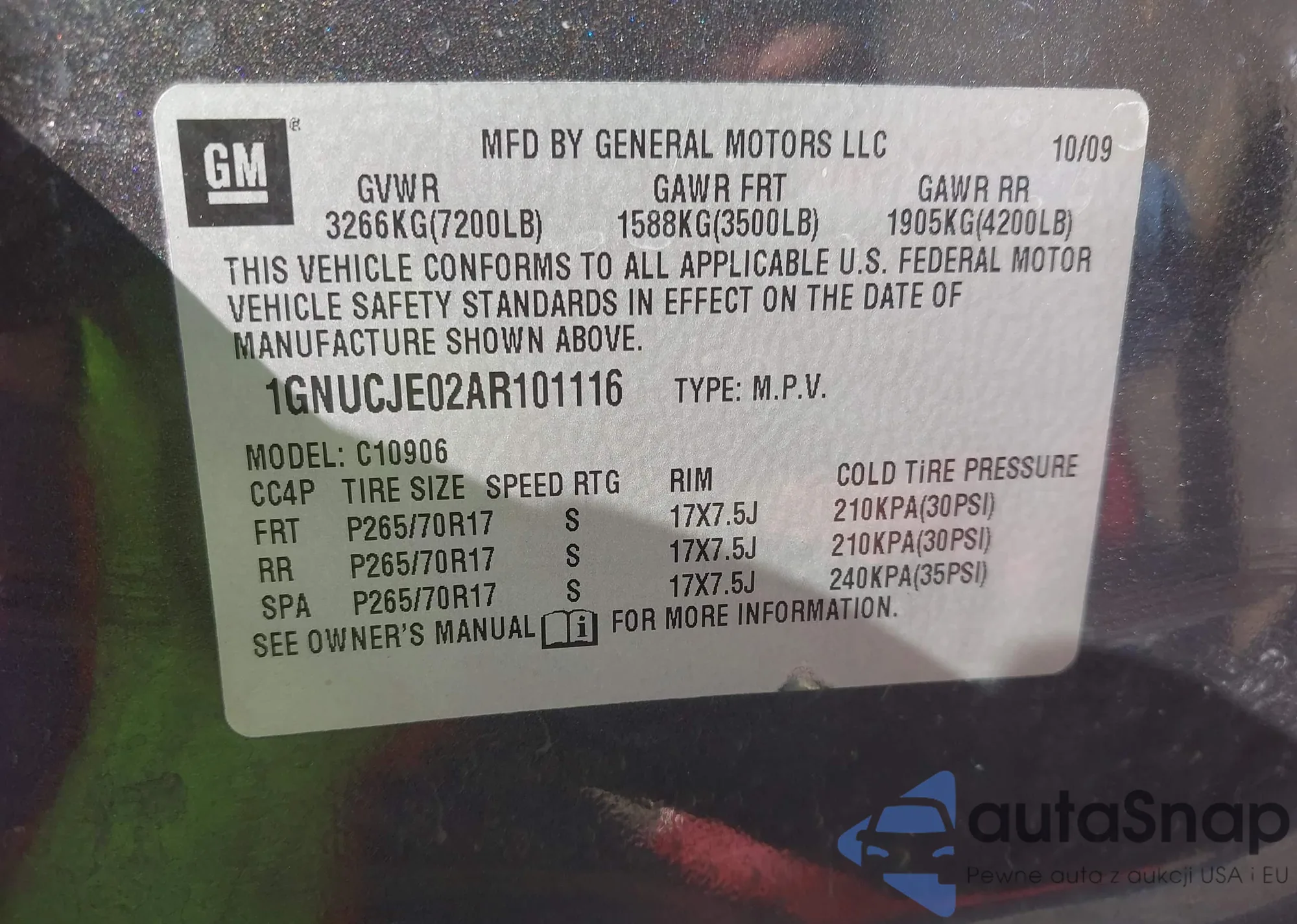 • VIN 1GNUCJE02AR101116