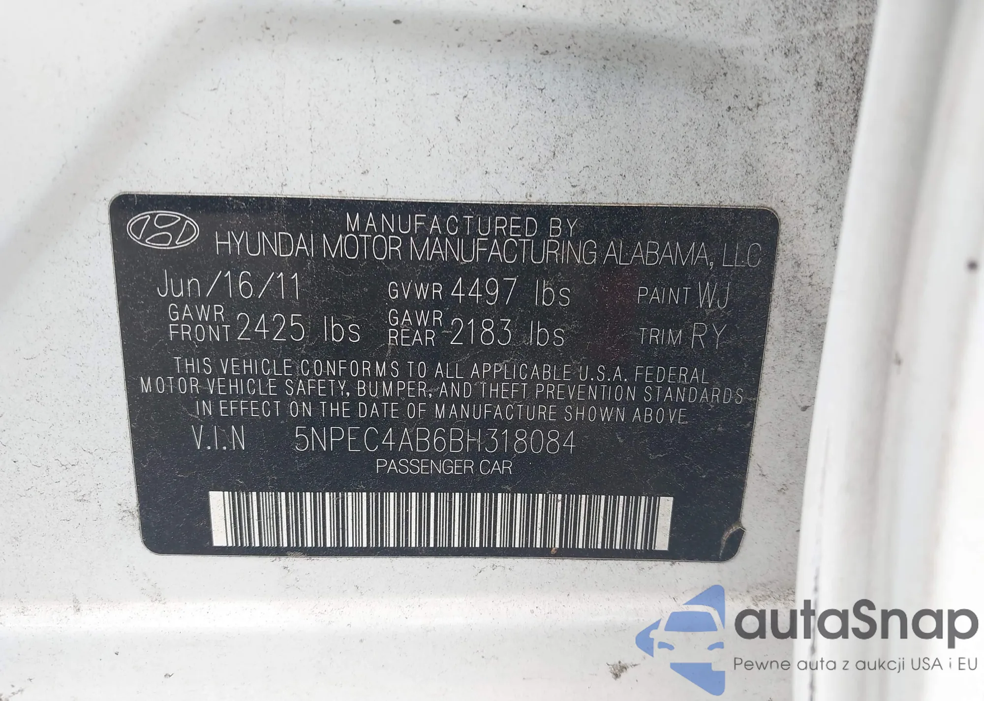 • VIN 5NPEC4AB6BH318084
