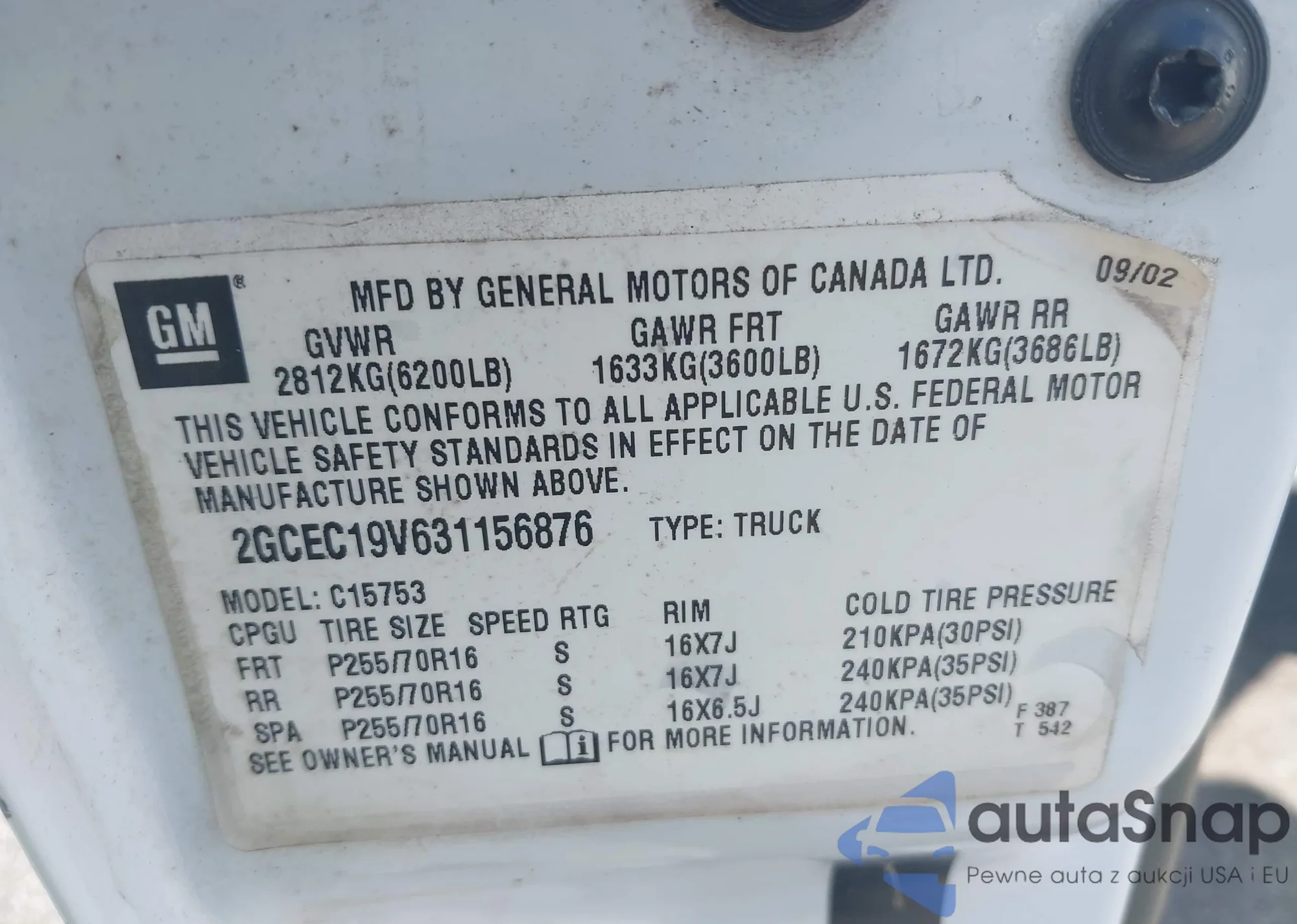 • VIN 2GCEC19V631156876