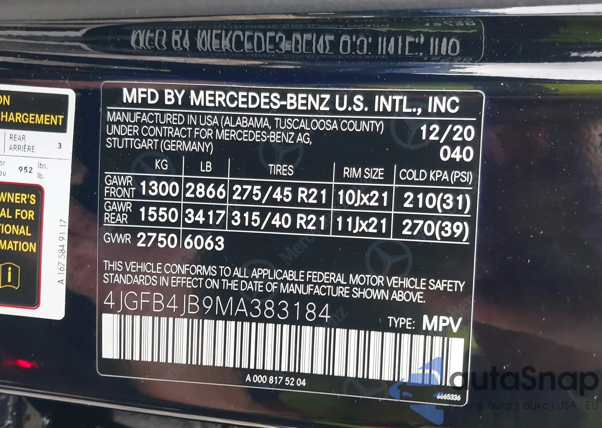 • VIN 4JGFB4JB9MA383184