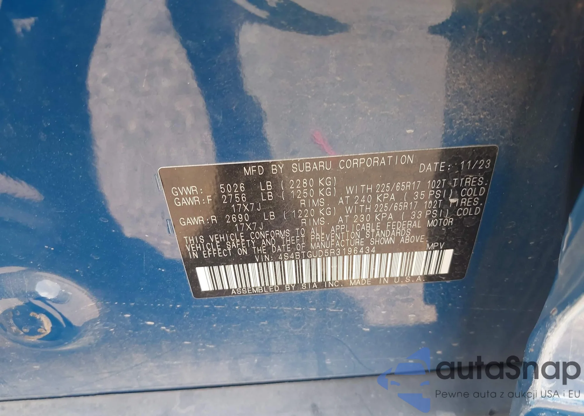 • VIN 4S4BTGUD5R3196434