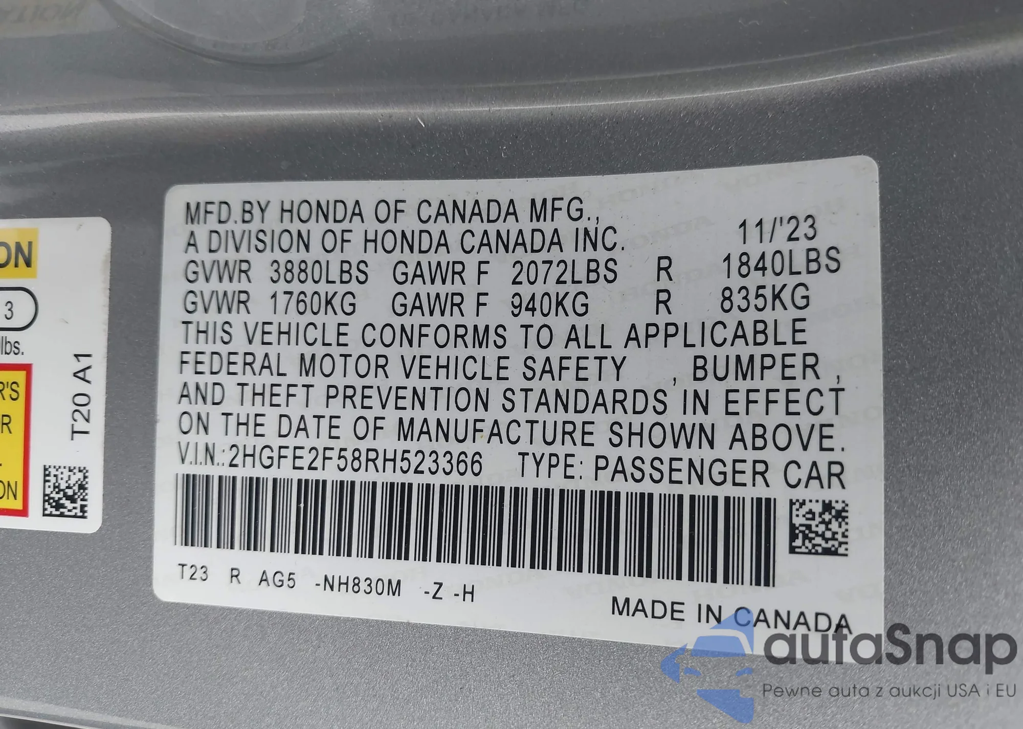 • VIN 2HGFE2F58RH523366
