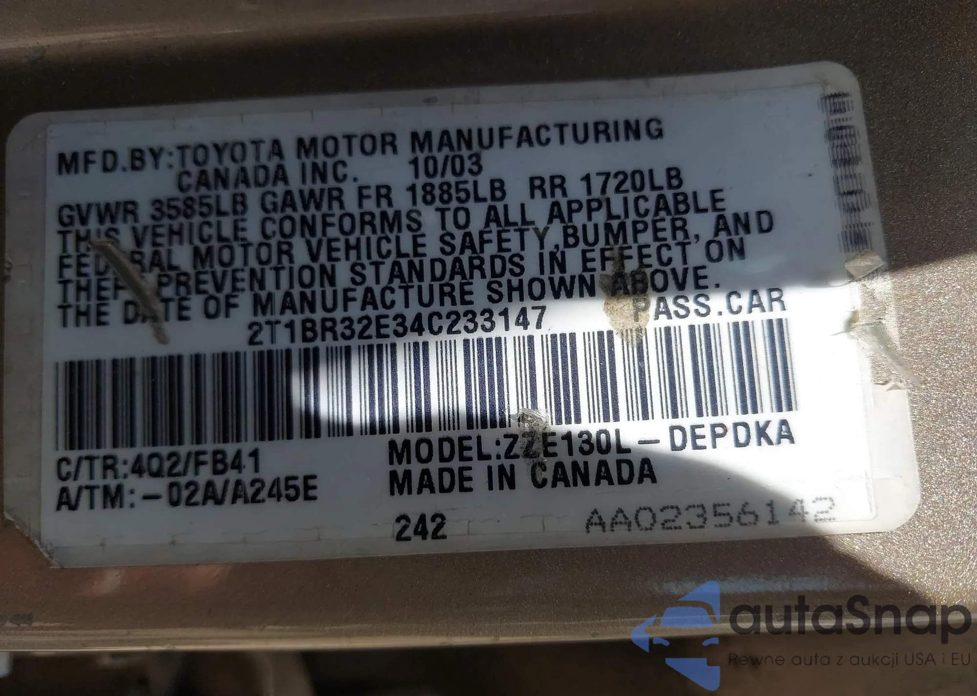 • VIN 2T1BR32E34C233147