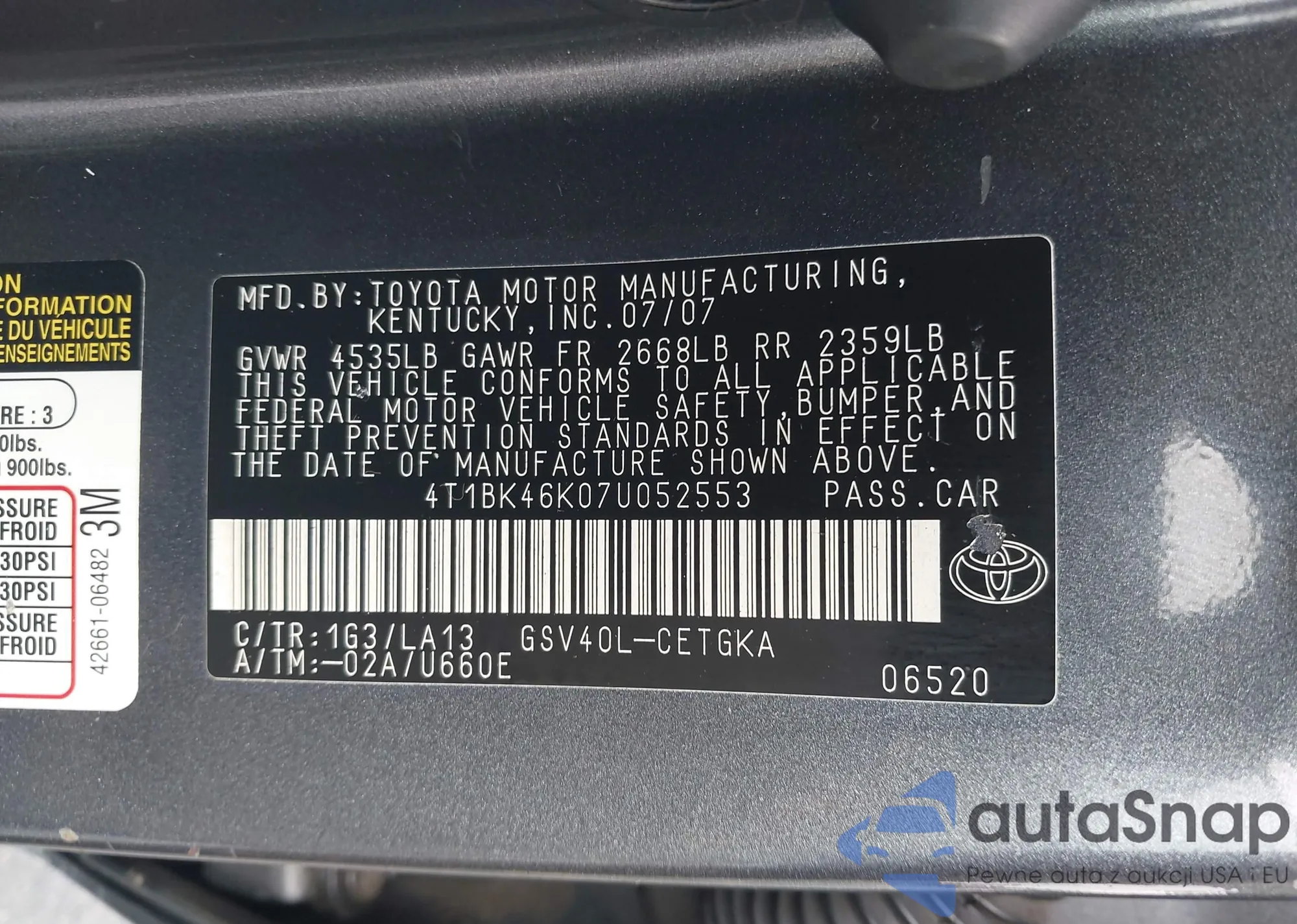 • VIN 4T1BK46K07U052553