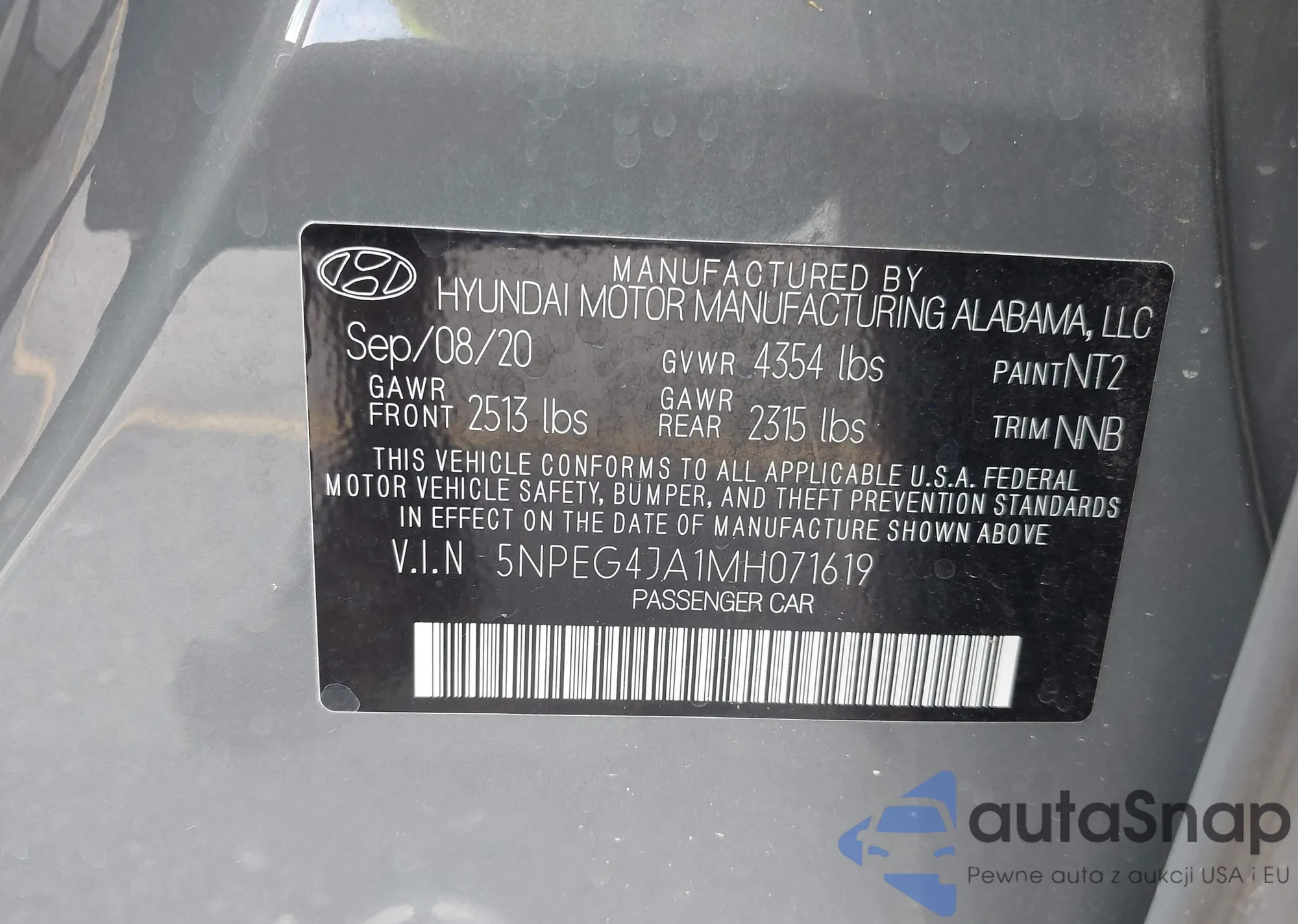 • VIN 5NPEG4JA1MH071619