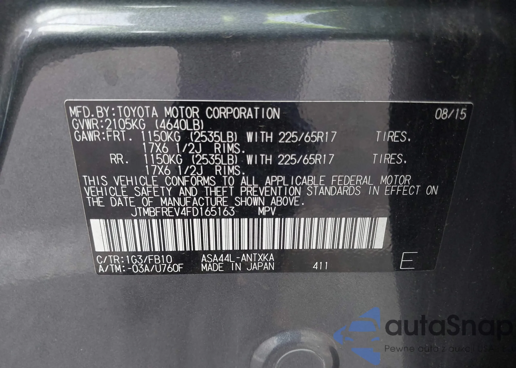 LOT: 42546975 VIN: 5N1AT2MV2FC778347