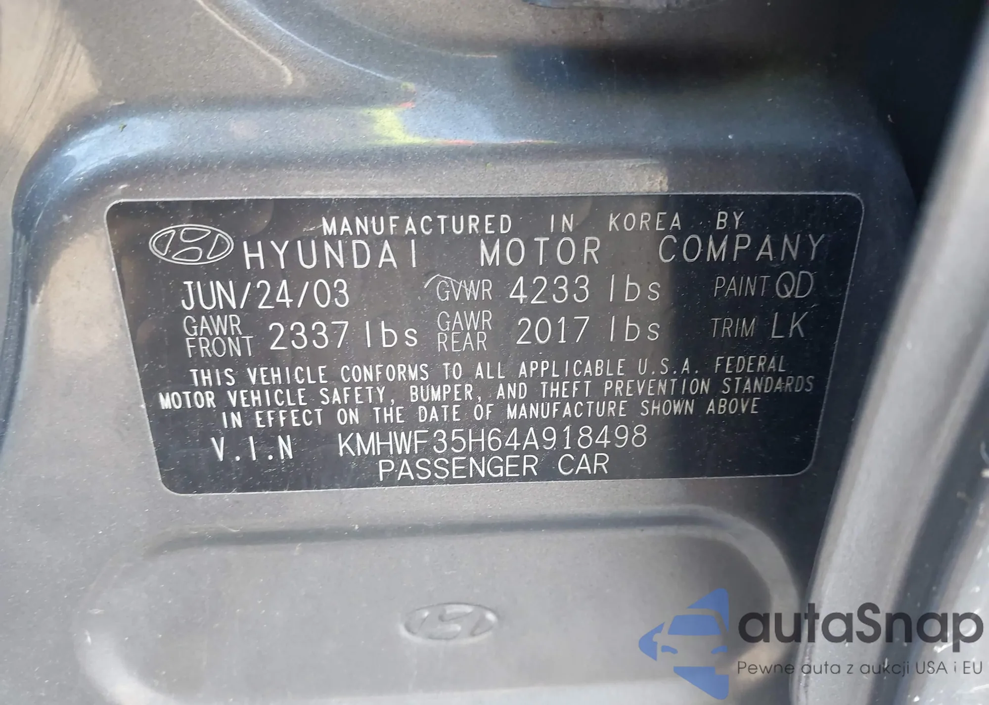 LOT: 42306212 VIN: KMHWF35H64A918498