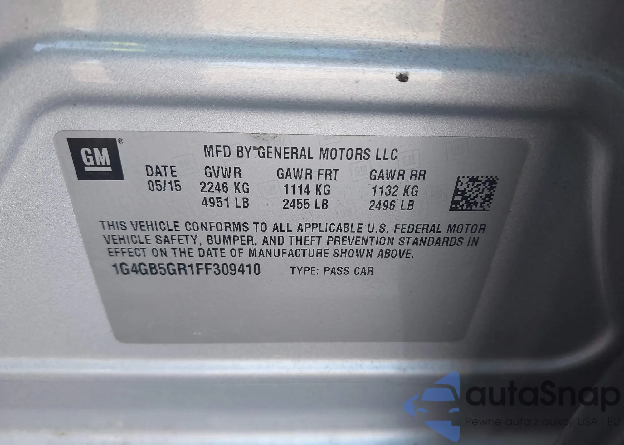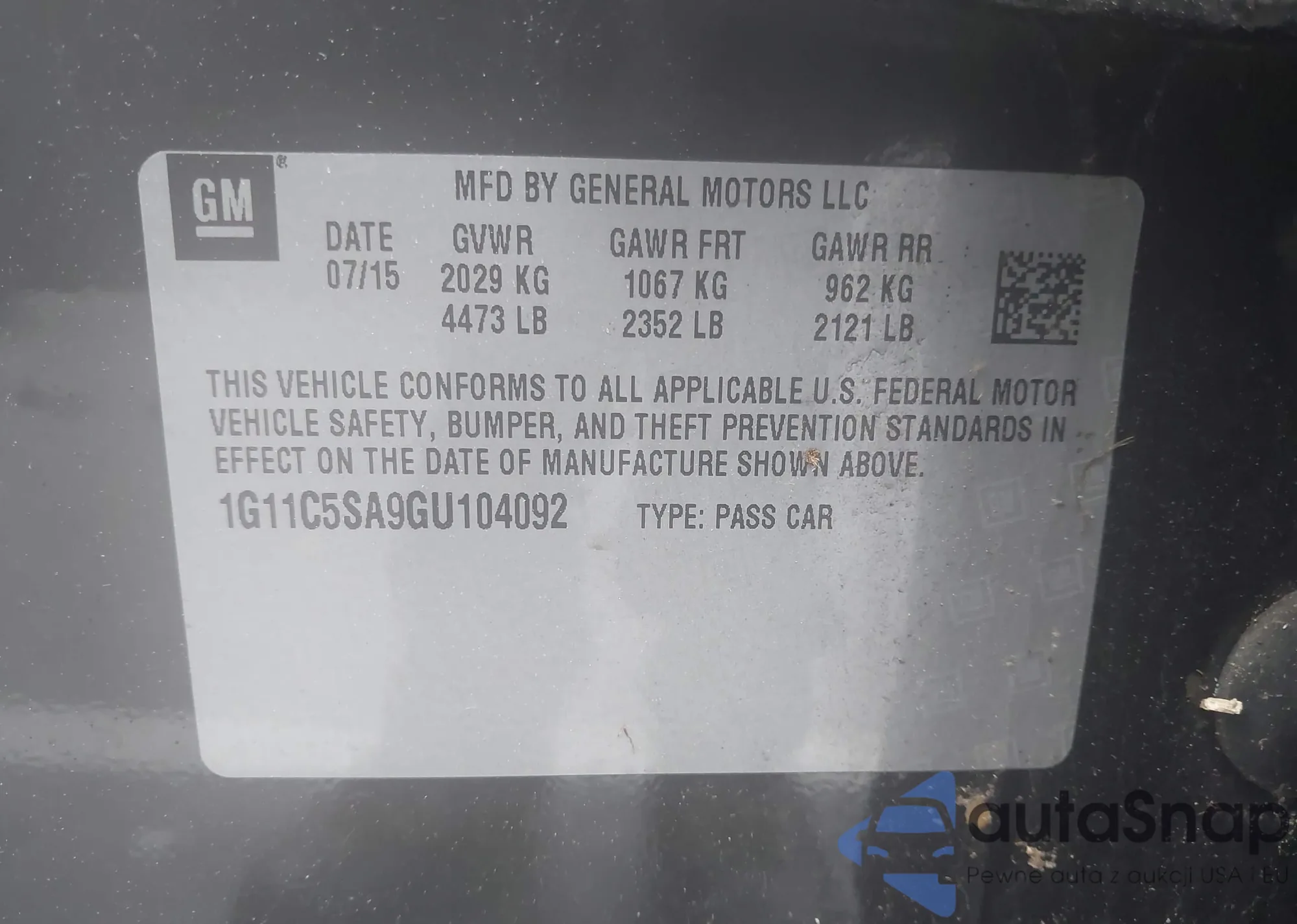 LOT: 42515764 VIN: 1G11C5SA9GU104092