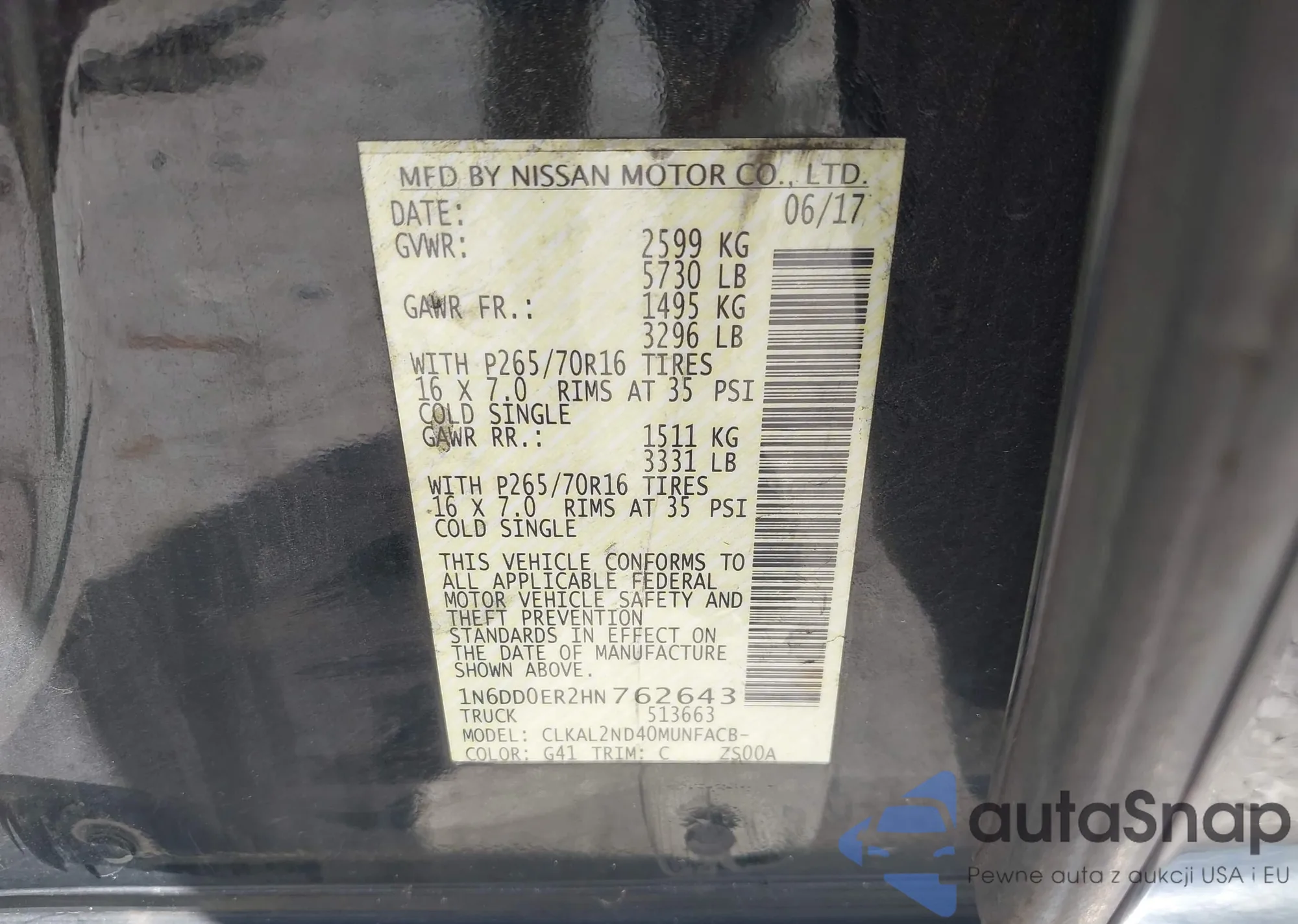 • VIN 1N6DD0ER2HN762643