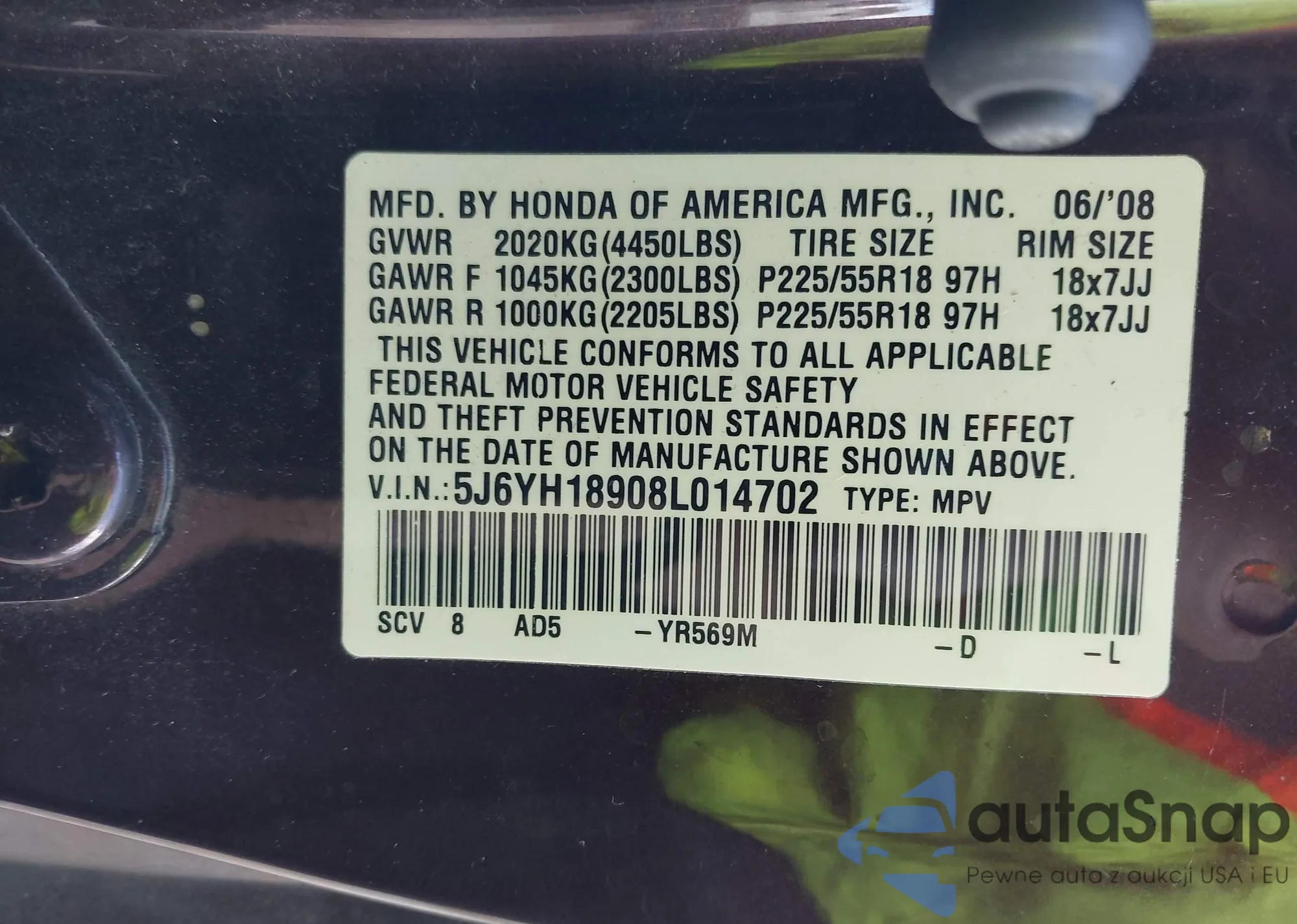 • VIN 5J6YH18908L014702