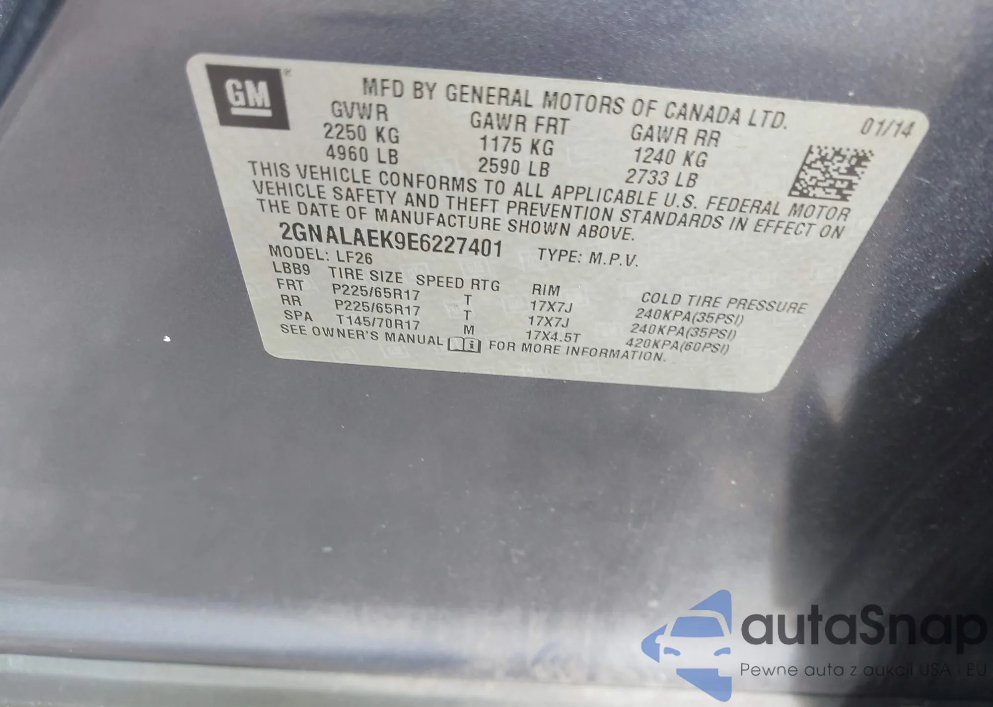 • VIN 2GNALAEK9E6227401