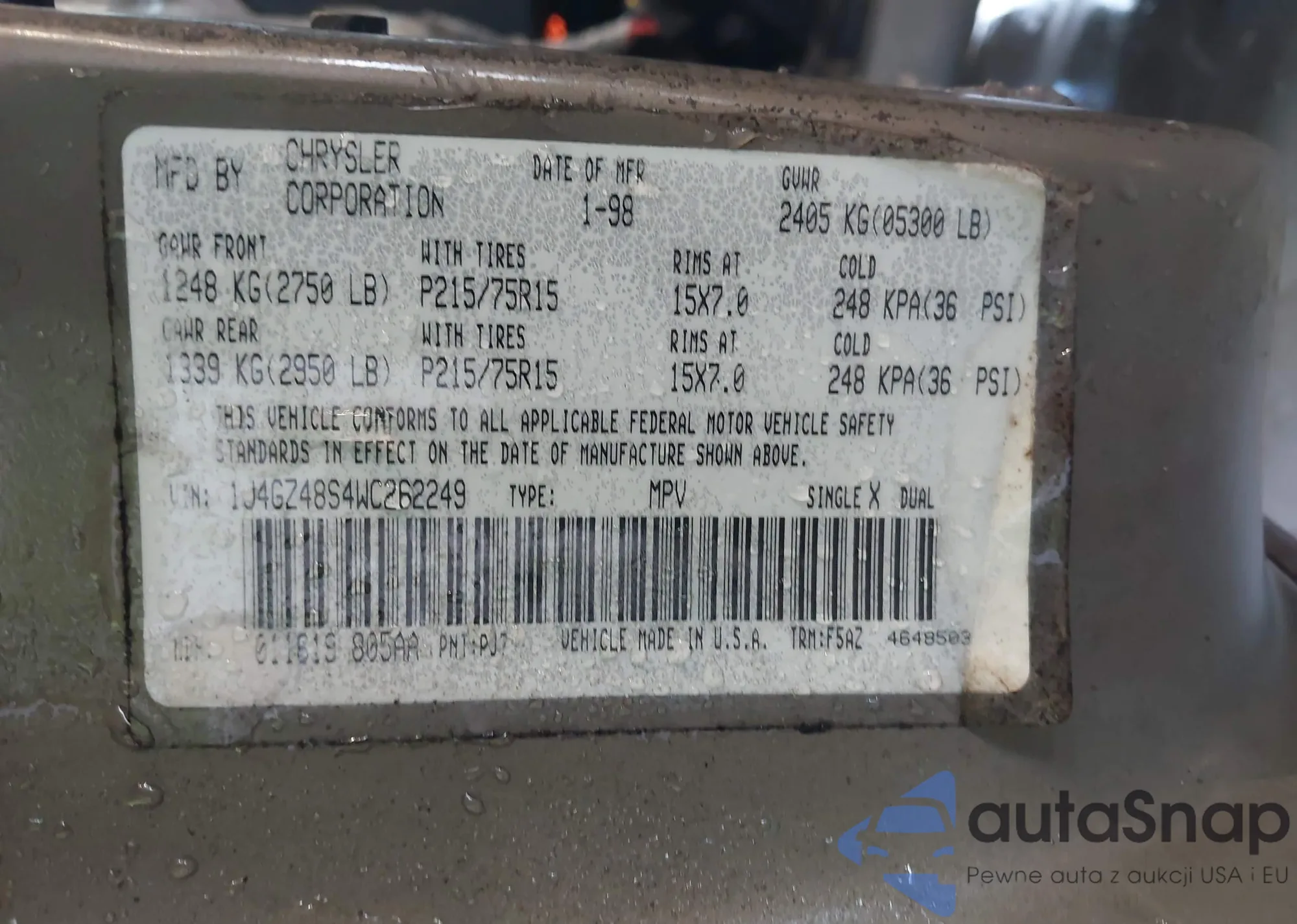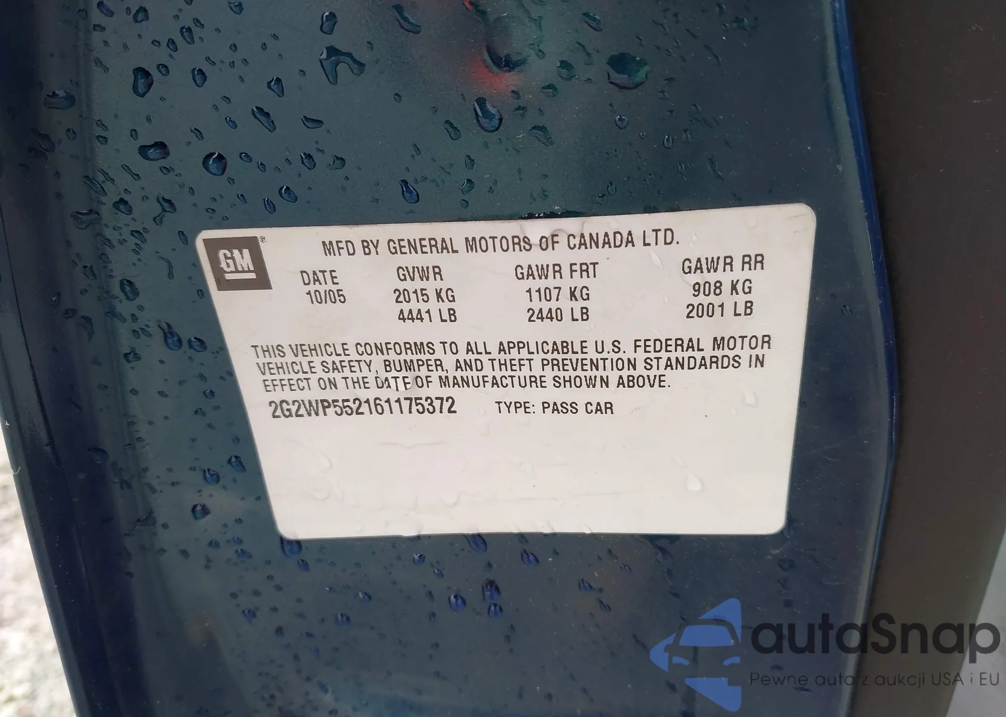 • VIN 2G2WP552161175372