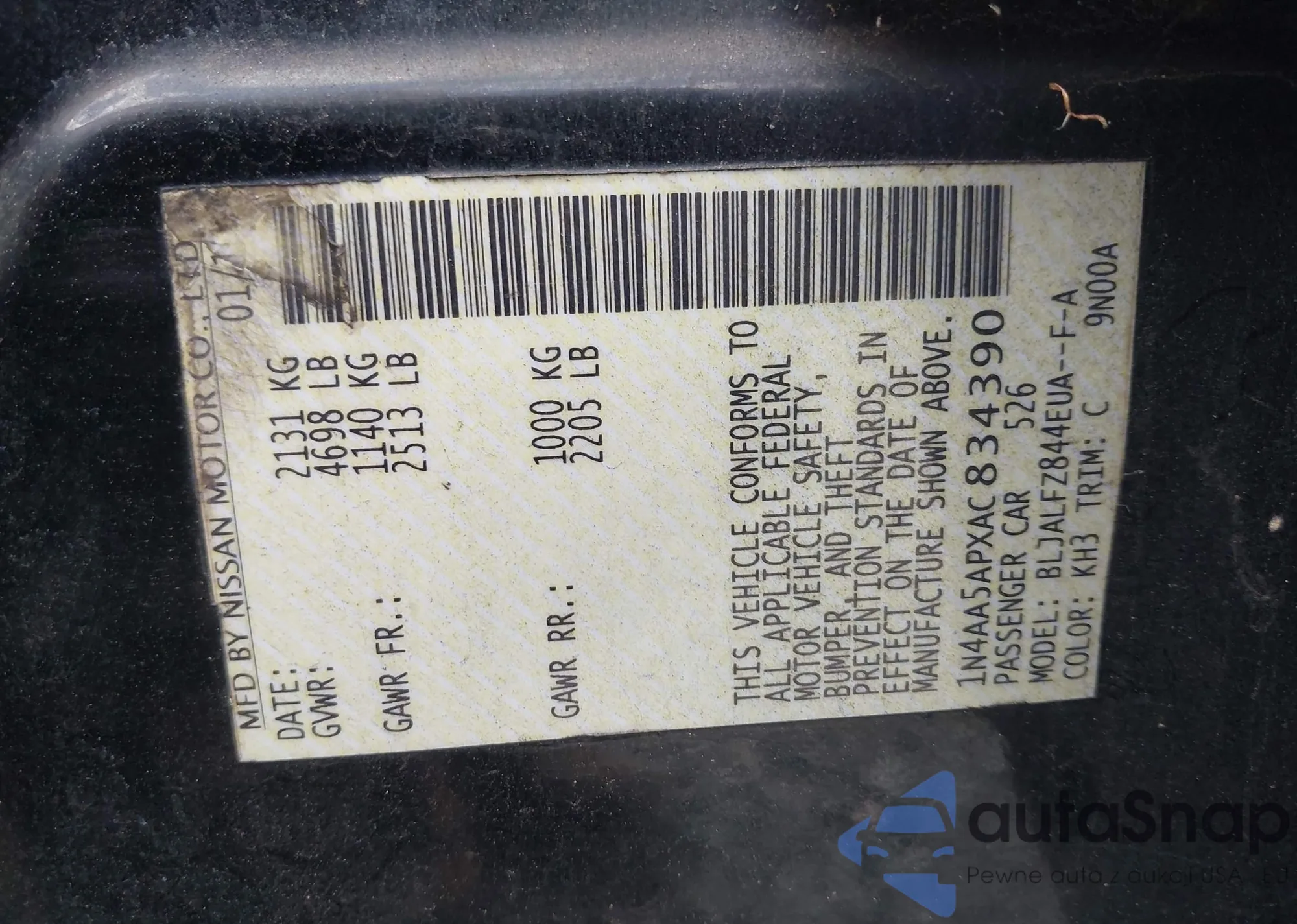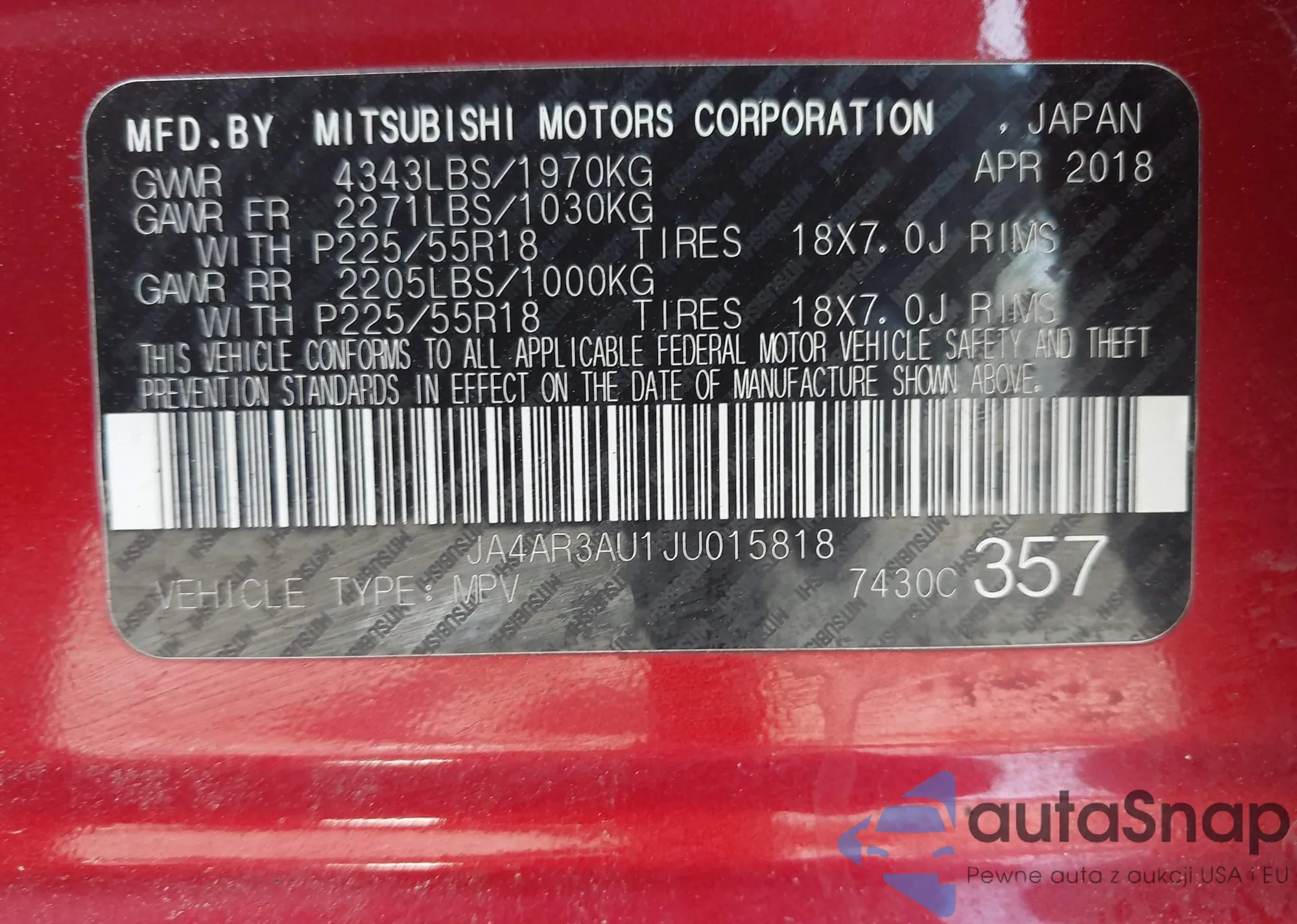 • VIN JA4AR3AU1JU015818