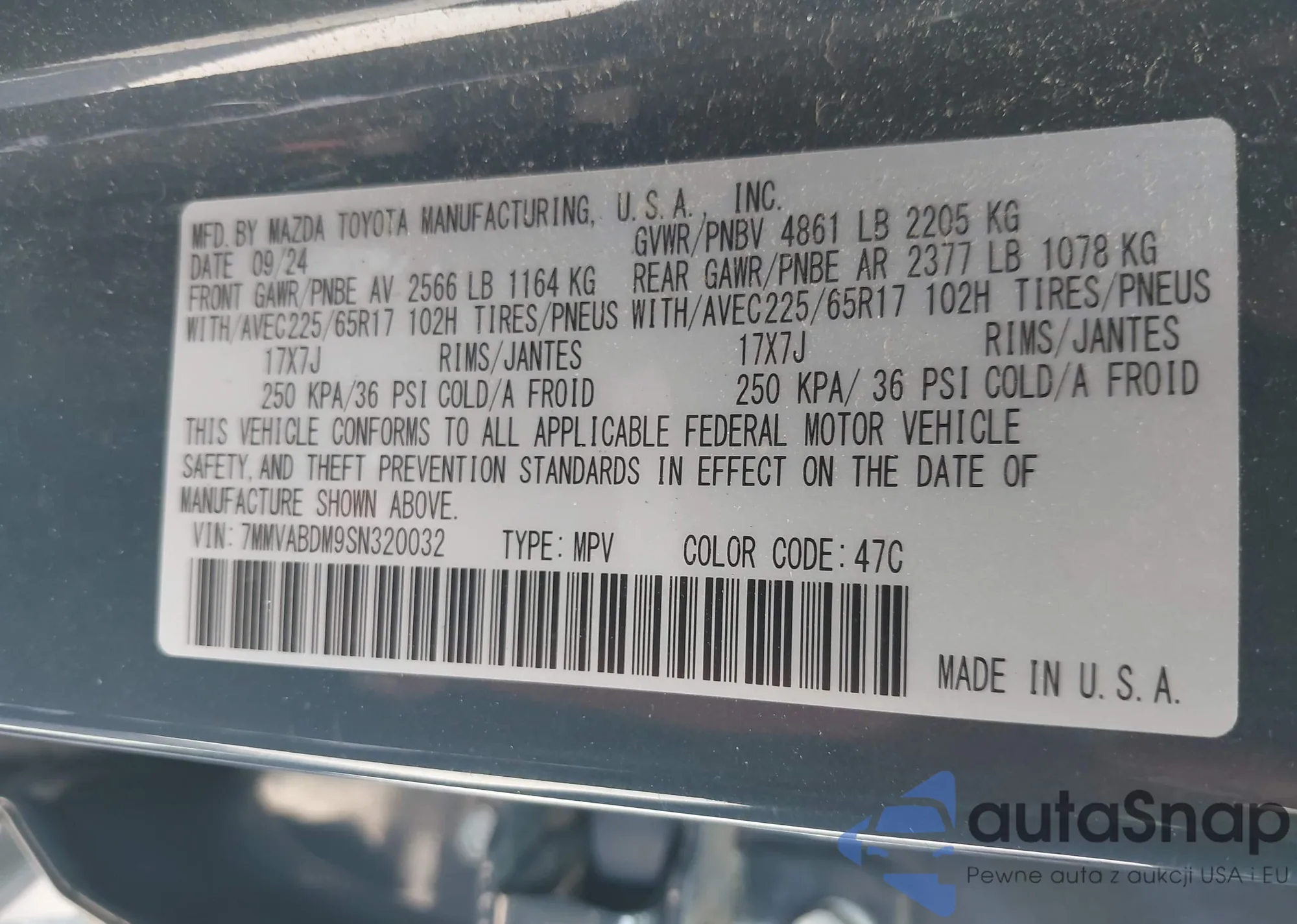 • VIN 7MMVABDM9SN320032