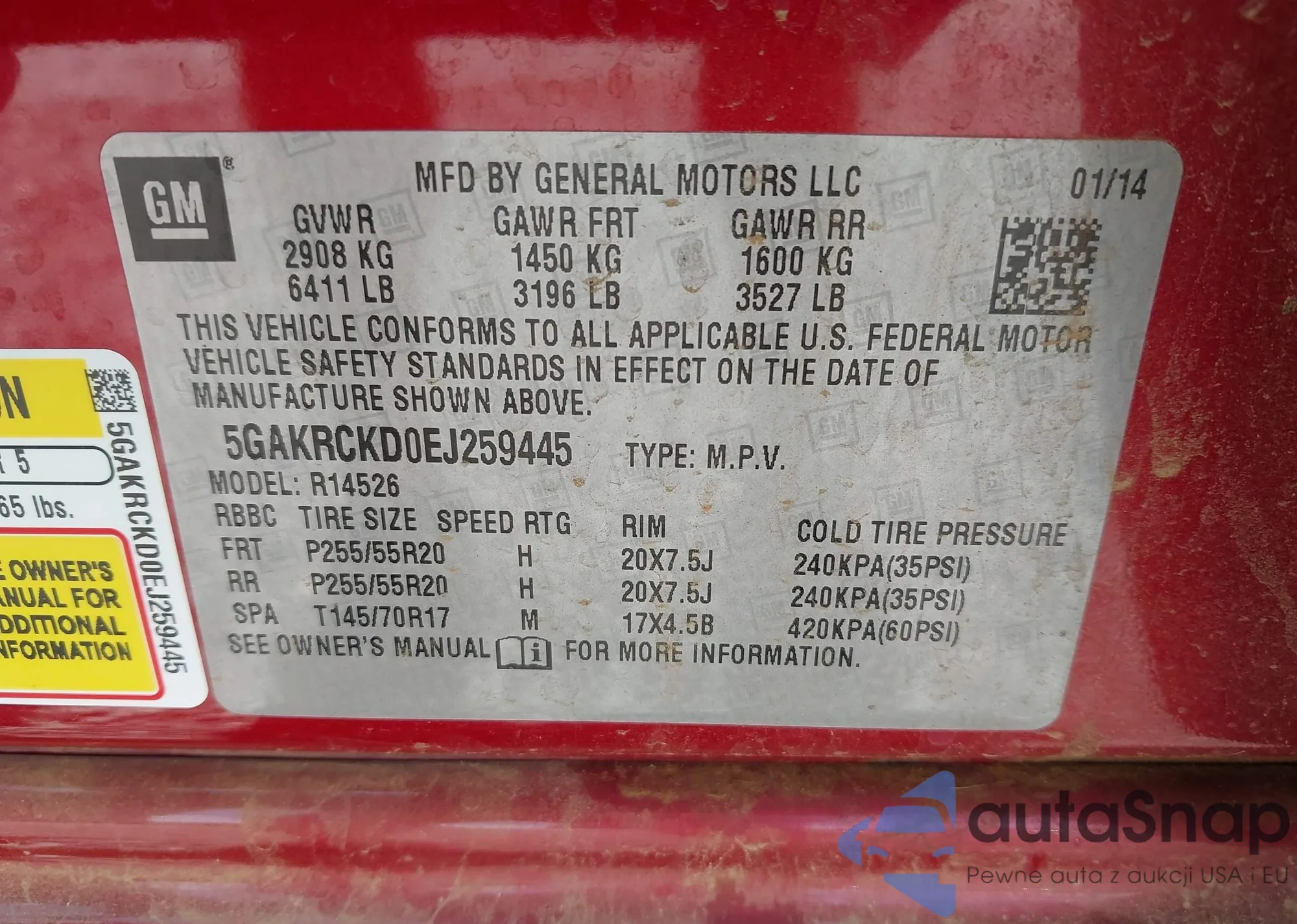 • VIN 5GAKRCKD0EJ259445