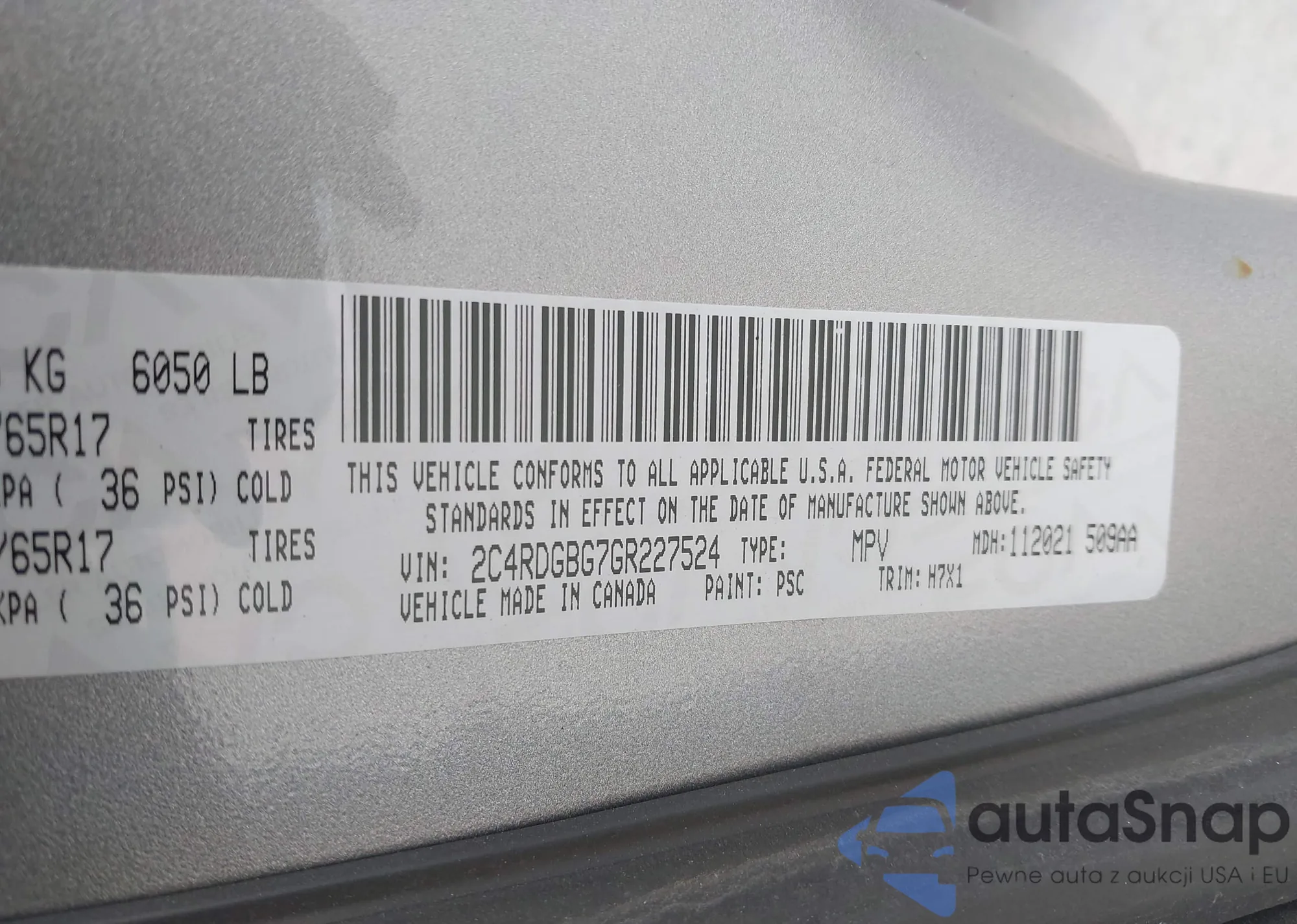 • VIN 2C4RDGBG7GR227524