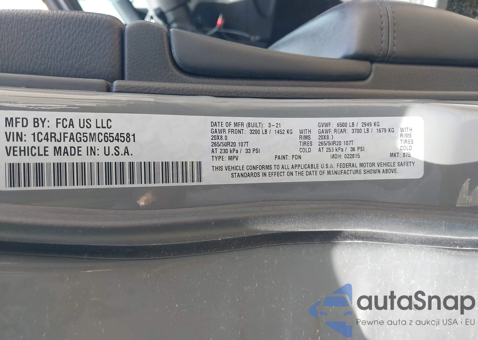 • VIN 1C4RJFAG5MC654581
