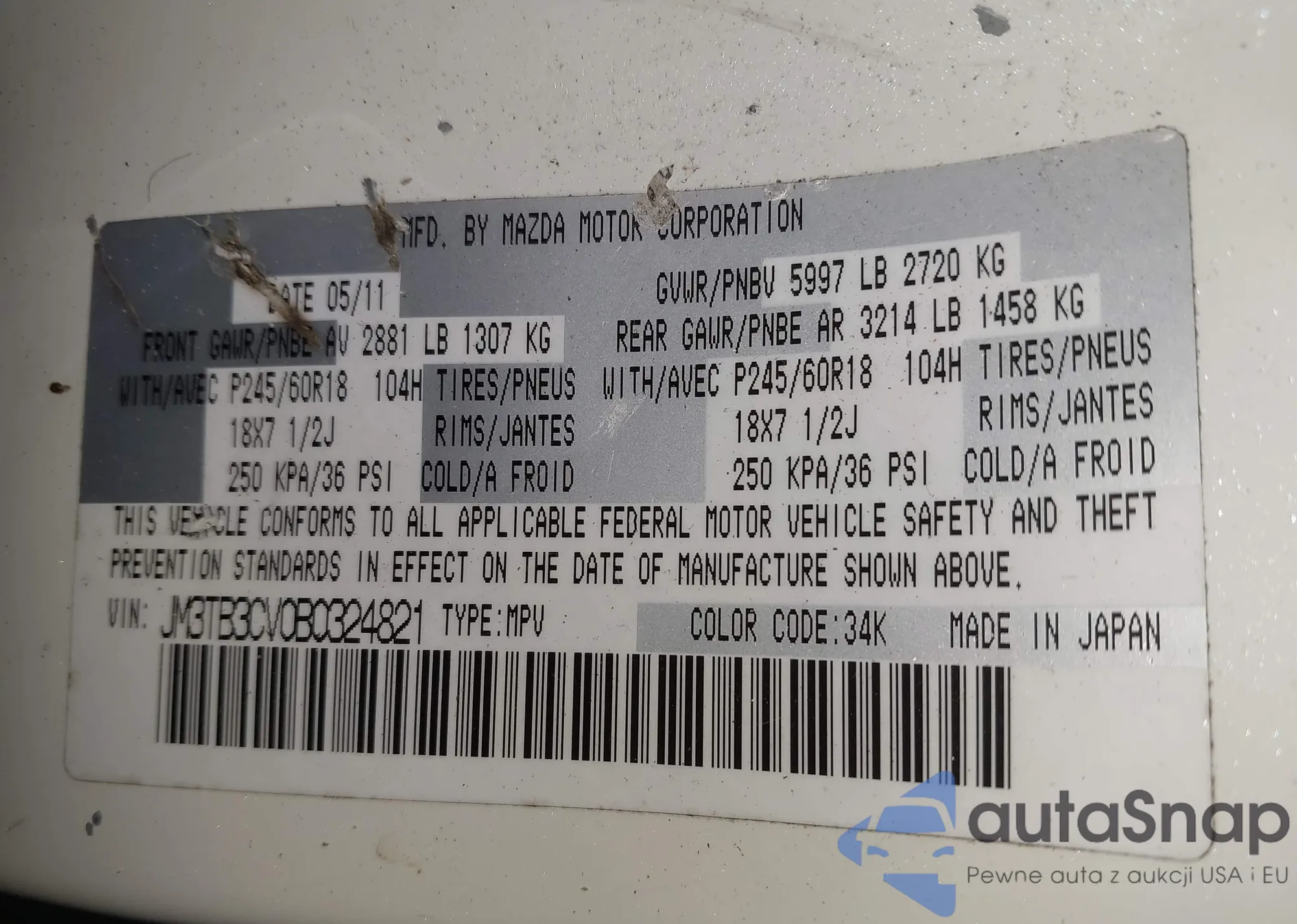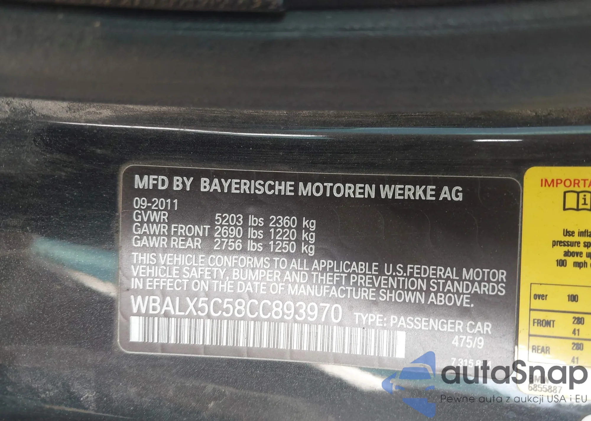 • VIN WBALX5C58CC893970