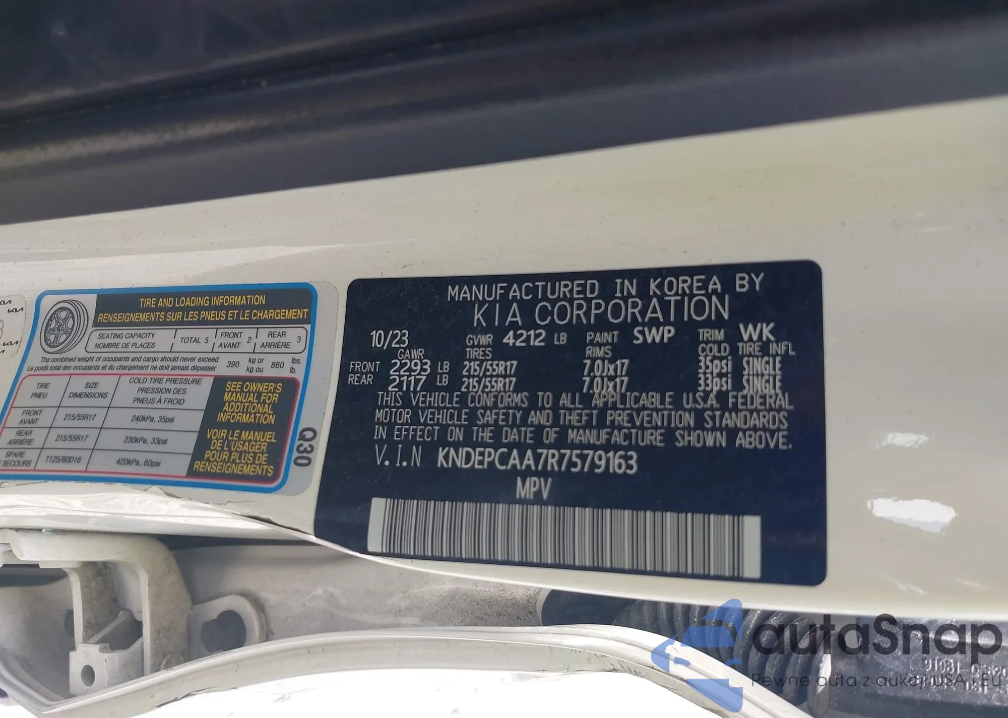 LOT: 42216974 VIN: KNDPVCDGXR7160299
