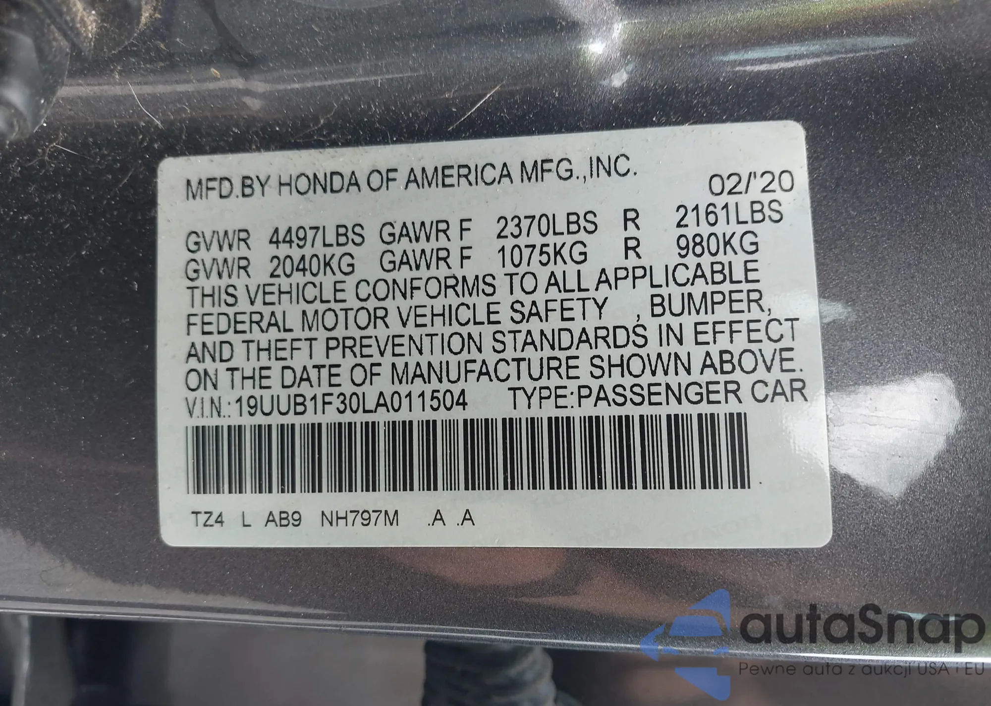 LOT: 42191735 VIN: KNMAT2MV6HP570195