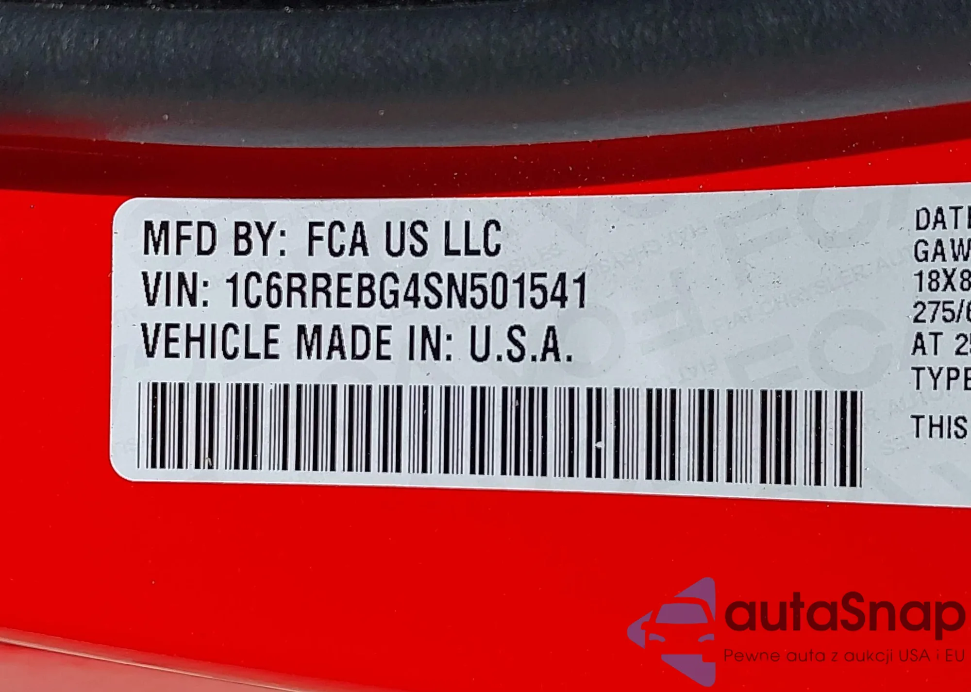 • VIN 1C6RREBG4SN501541