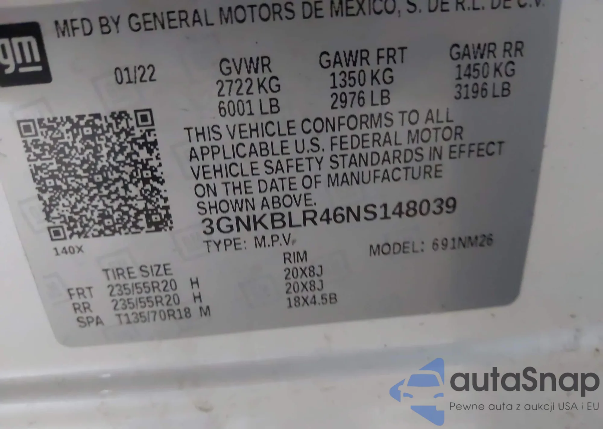 • VIN 3GNKBLR46NS148039