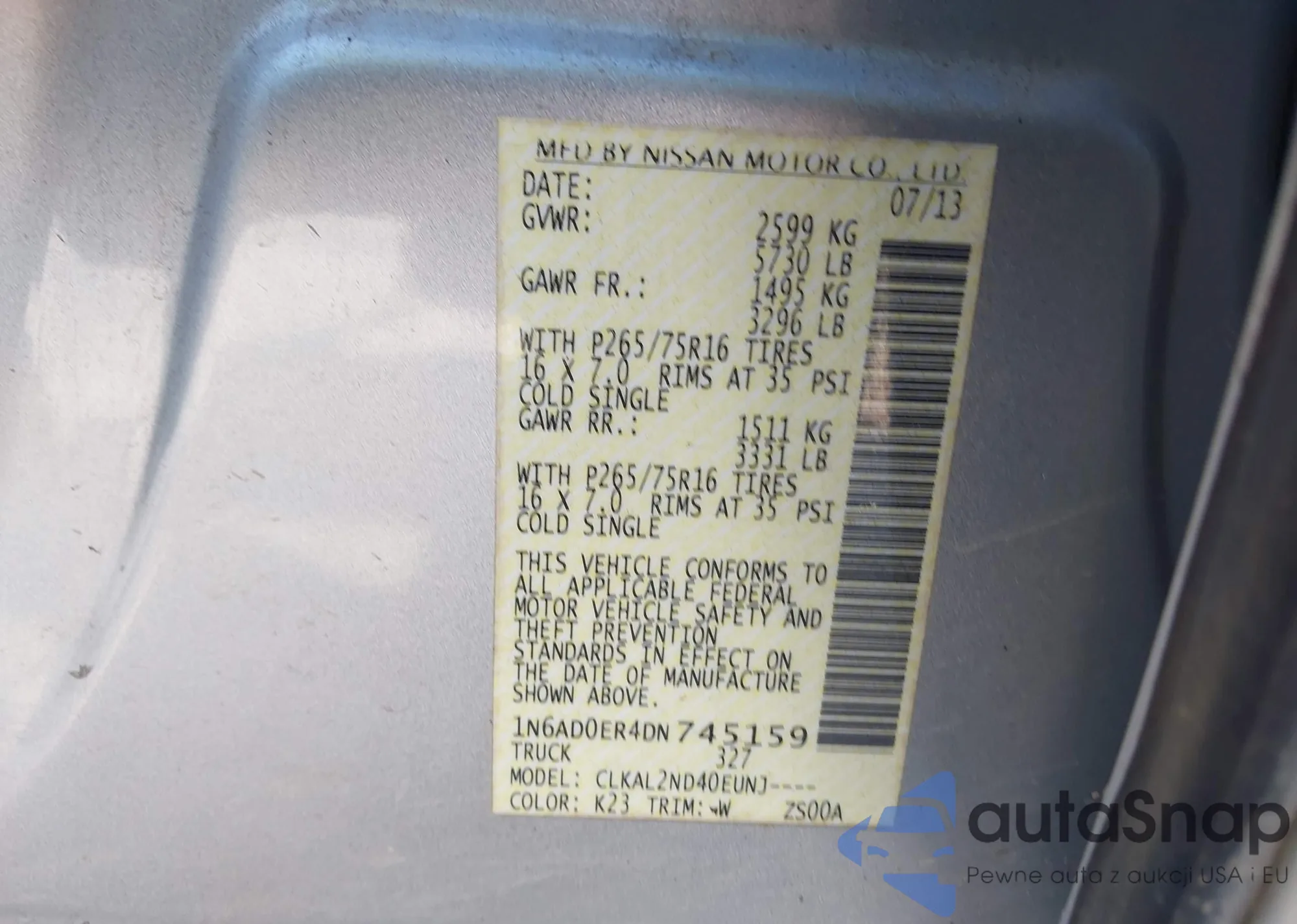 • VIN 1N6AD0ER4DN745159