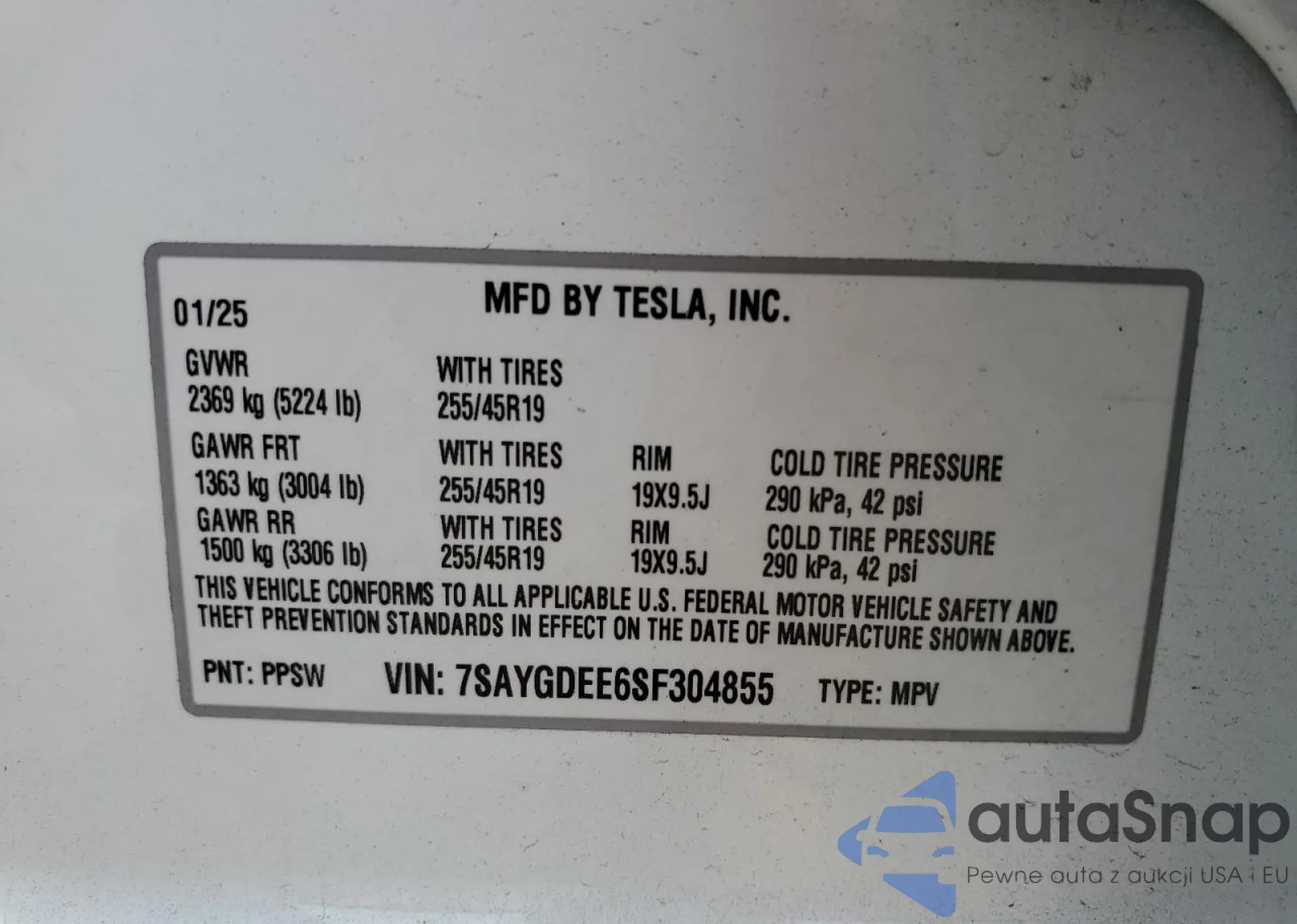 • VIN 7SAYGDEE6SF304855