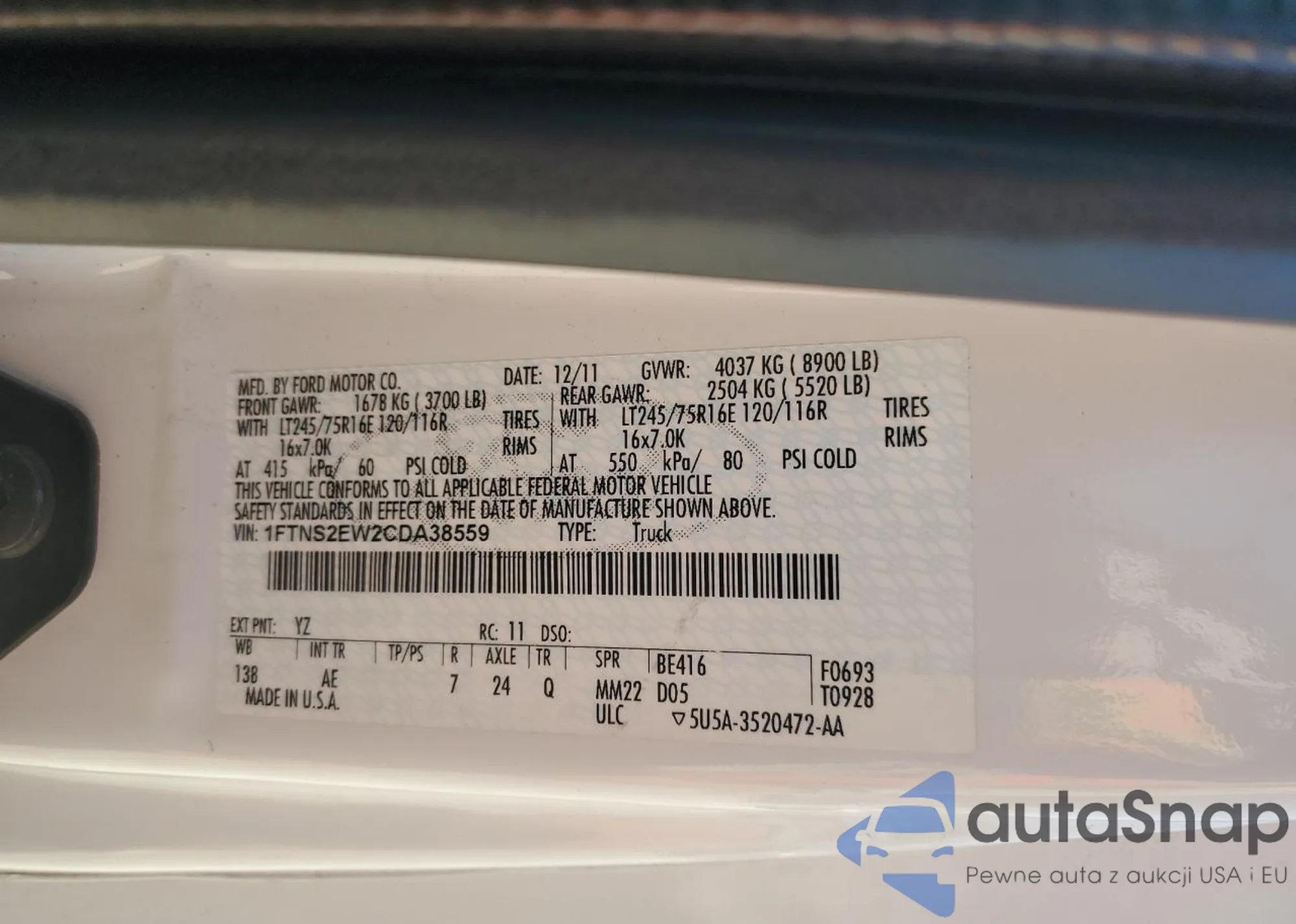 • VIN JN8AS5MV4CW702362