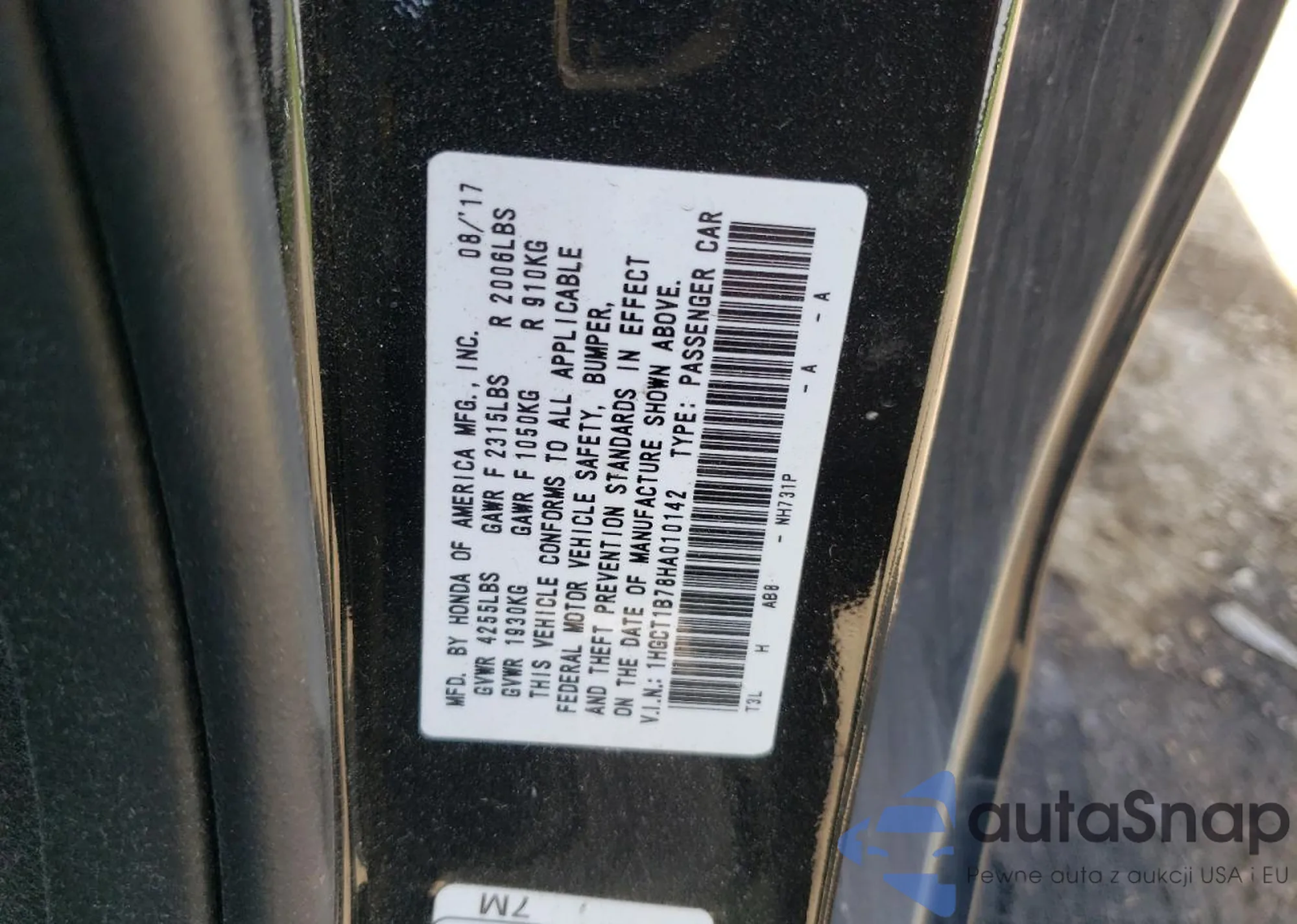LOT: 57083005 VIN: 1HGCT1B78HA010142