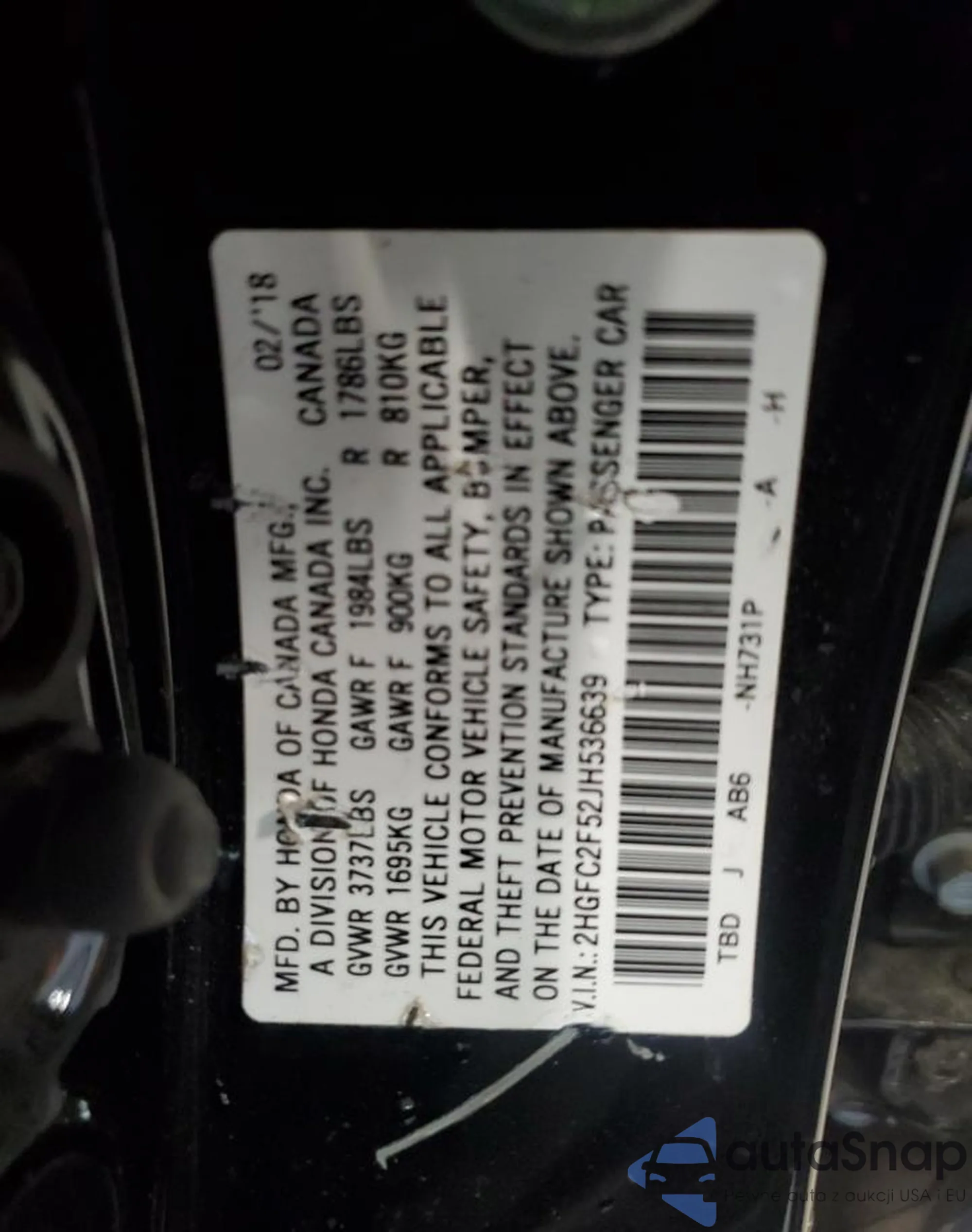 • VIN 2HGFC2F52JH536639