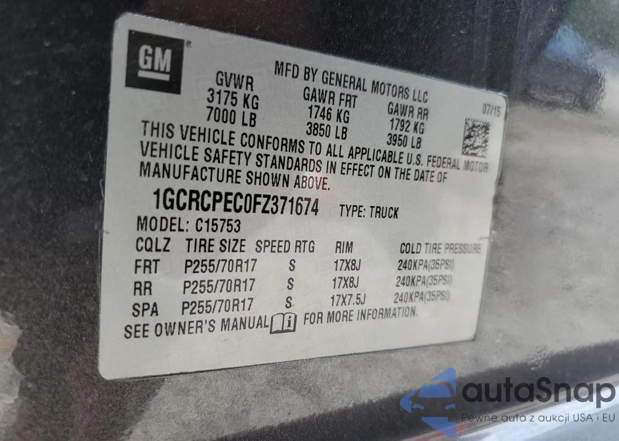 • VIN 1GCRCPEC0FZ371674