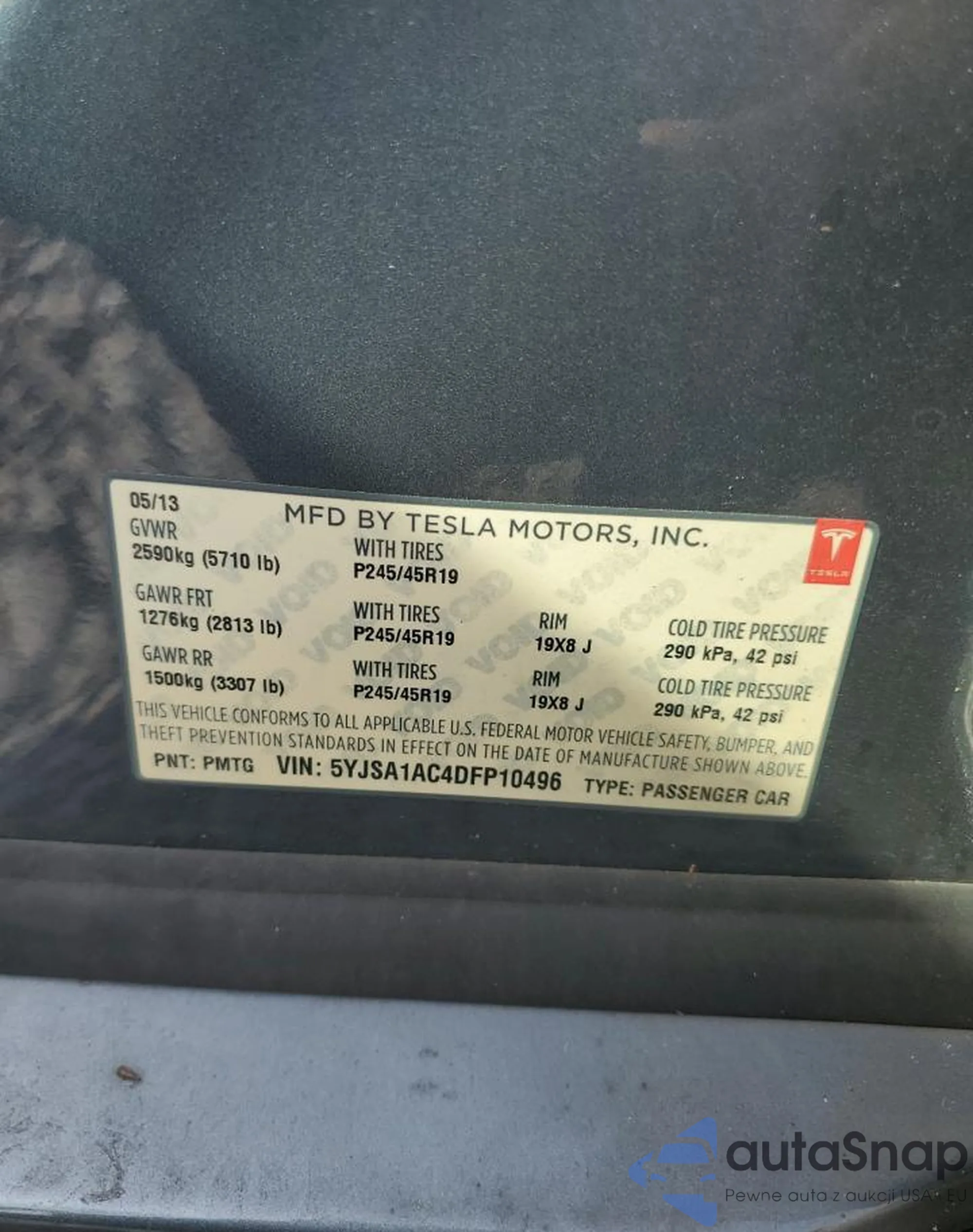 • VIN 5YJSA1AC4DFP10496