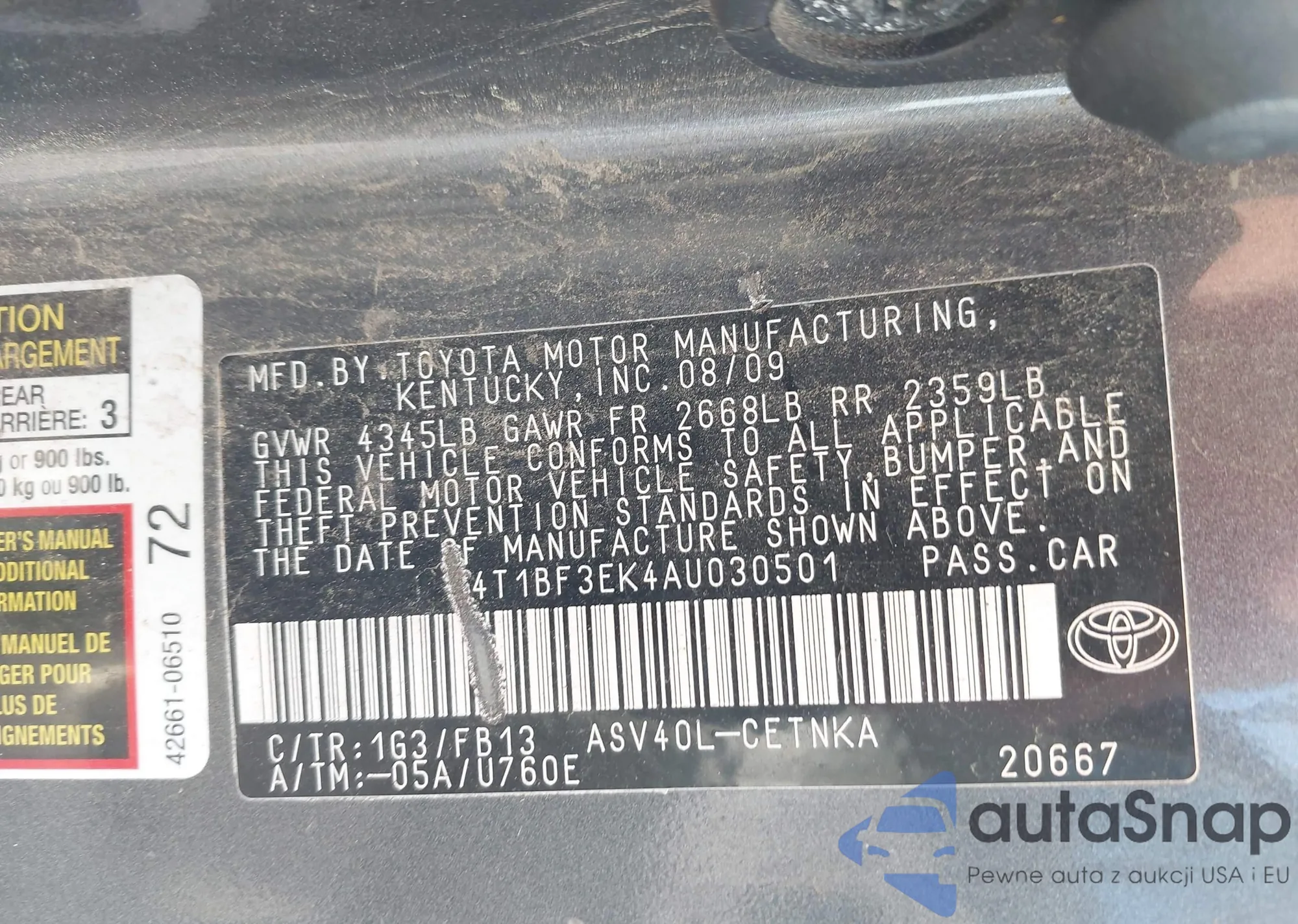 • VIN 4T1BF3EK4AU030501