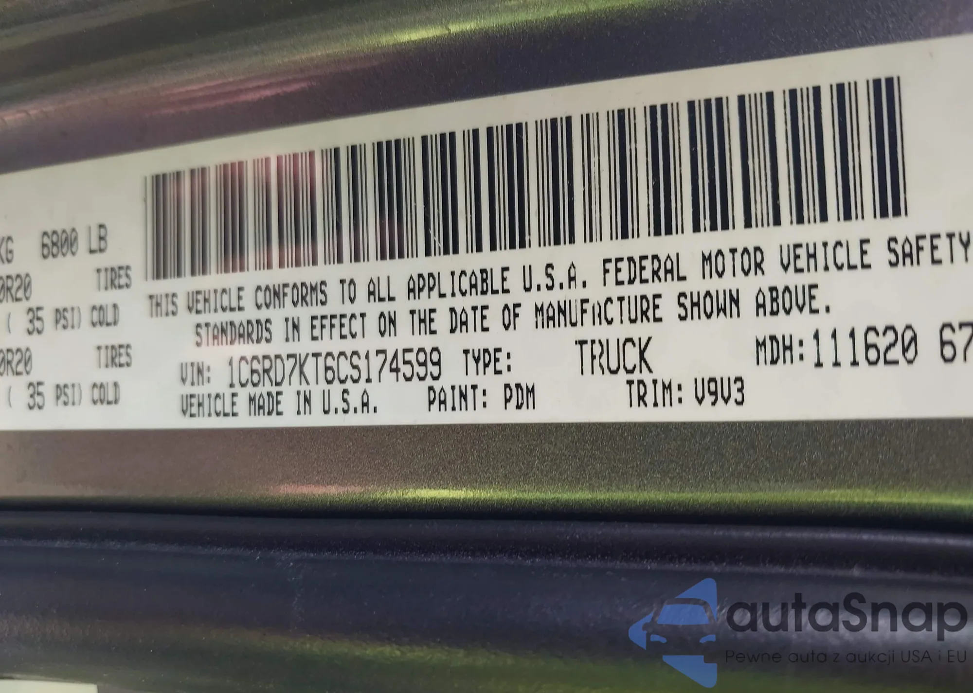• VIN 3C6JR6DG7PG674129