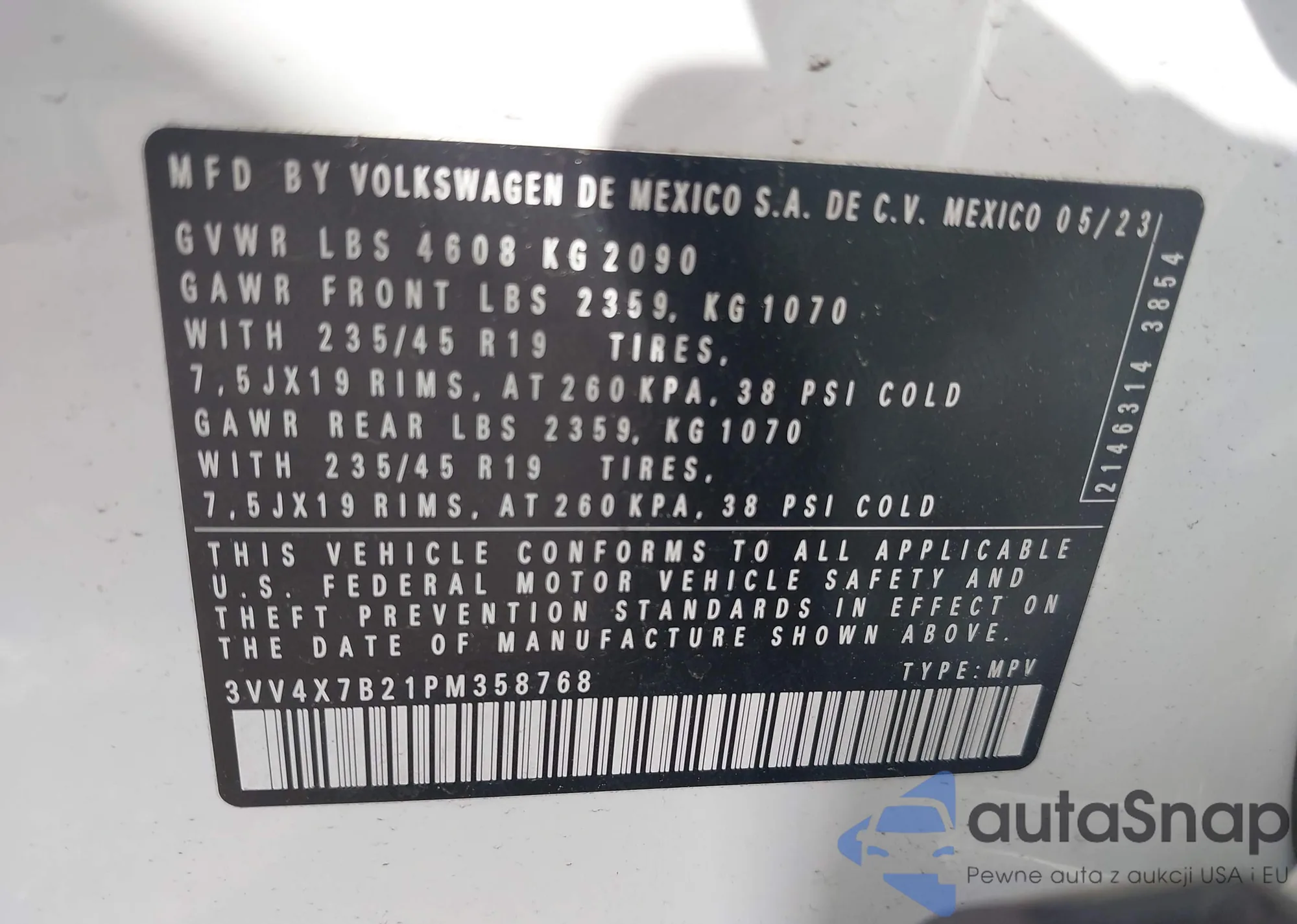 LOT: 42699814 VIN: JF2GPAFC9F8311813