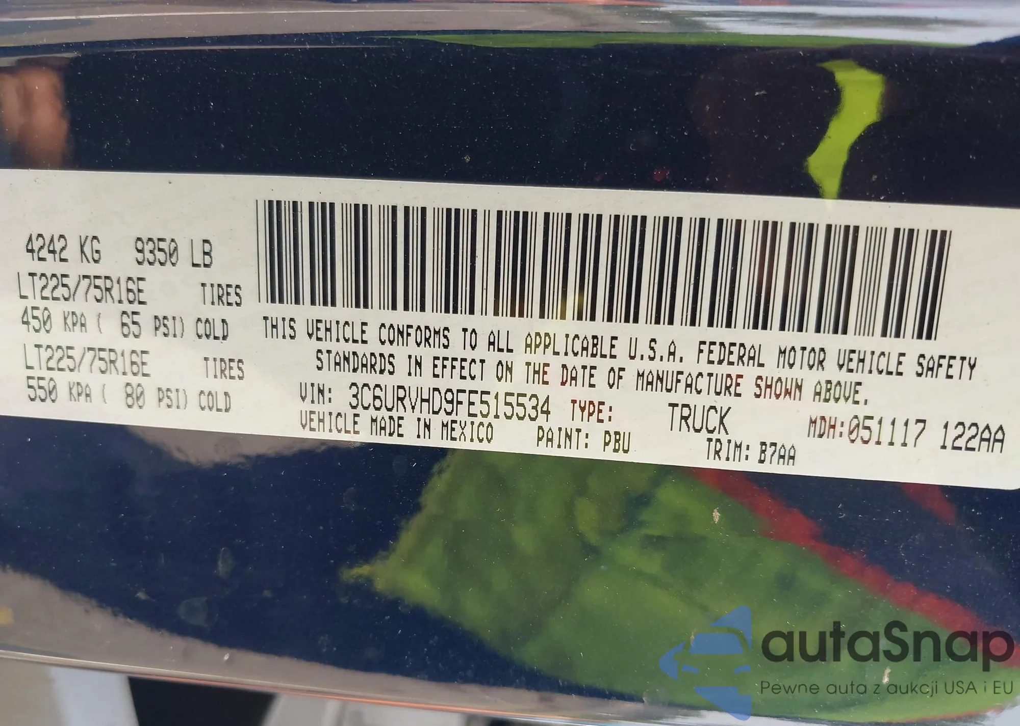 • VIN 3C6URVHD9FE515534