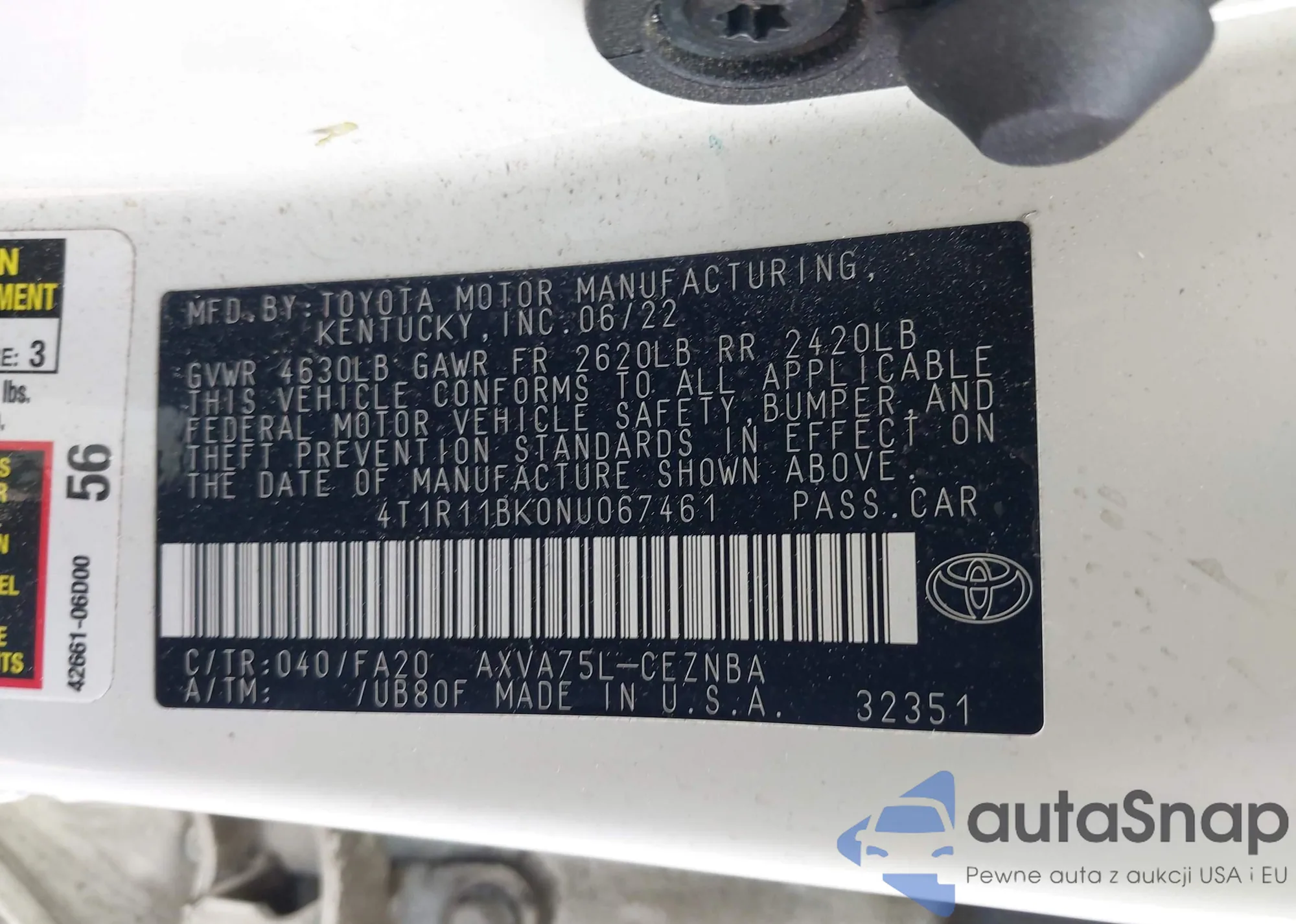 • VIN 4T1R11BK0NU067461
